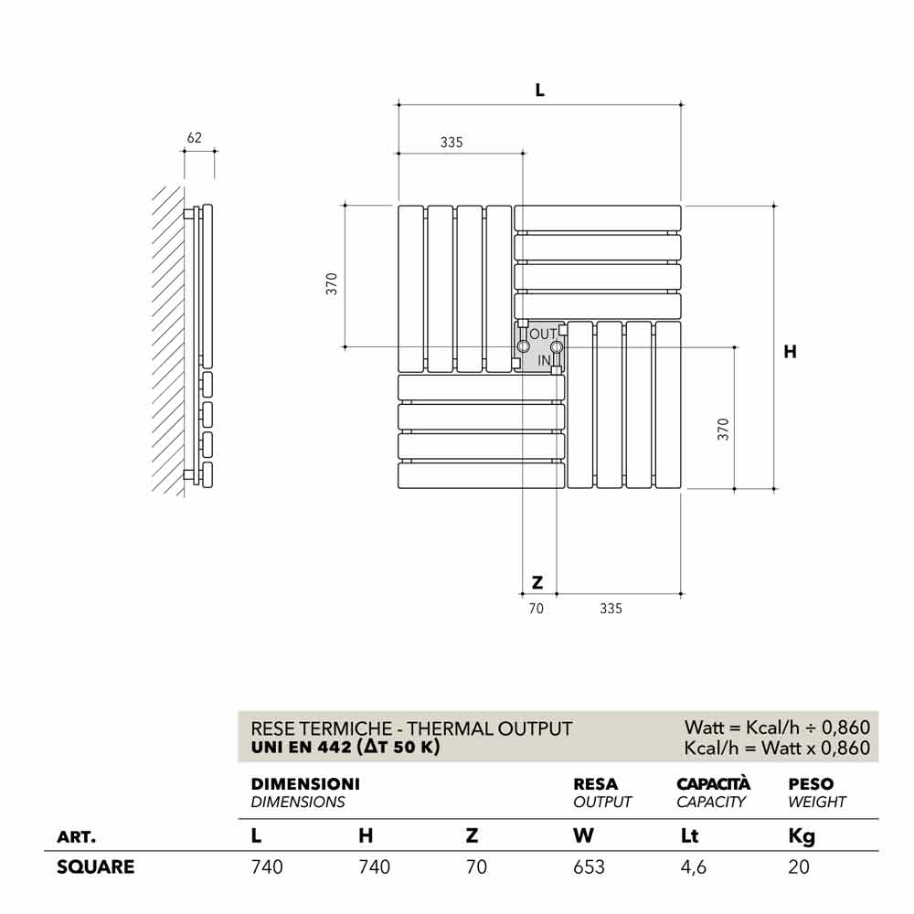 Radiador hidráulico cuadrado de diseño made in Italy Square by Scirocco H