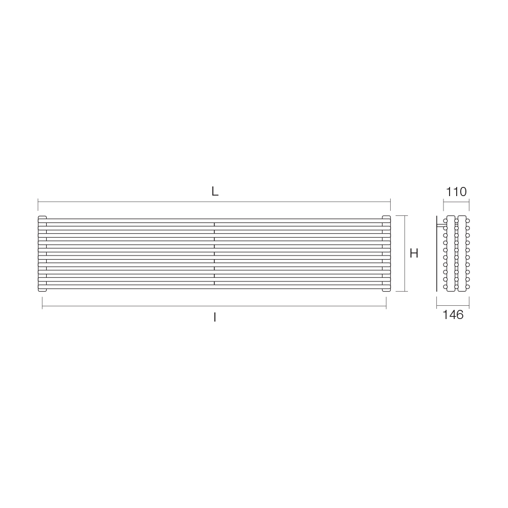 una triple serie de elementos horizontales de 1,6 cm de diámetro soldados a