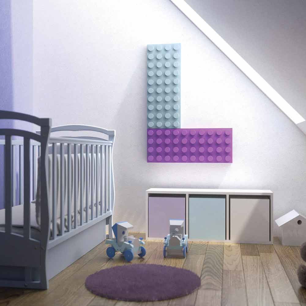 Radiador colorido con un estilo moderno y divertido, en versión hidráulica. Un proyecto inspirado en un icono afectivo compartido por todos. Múltiples combinaciones de colores para elementos modulares horizontales y verticales. Como en un juego de construcción, los elementos se combinan ubicándose uno al lado del otro en función del espacio disponible y del rendimiento térmico necesario.