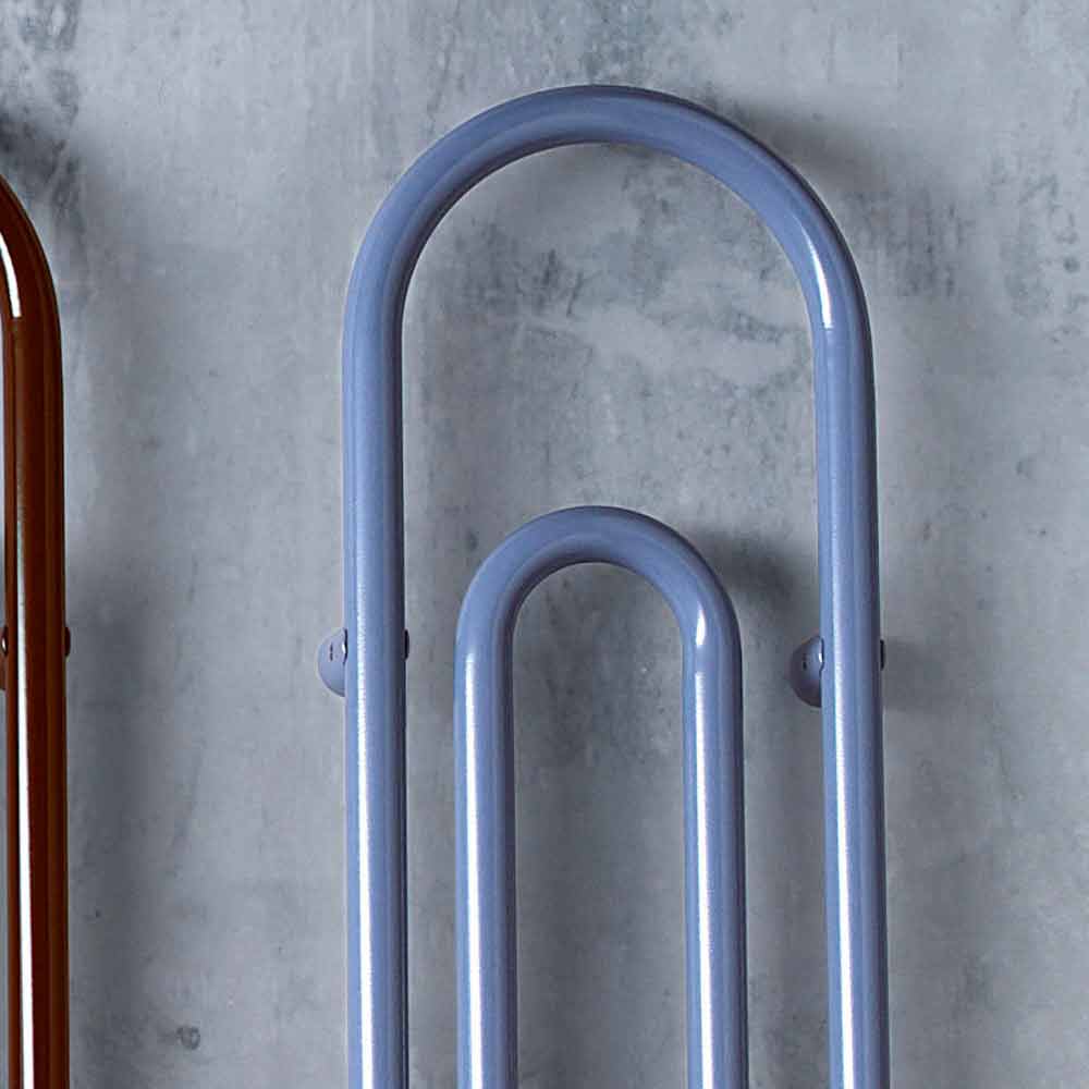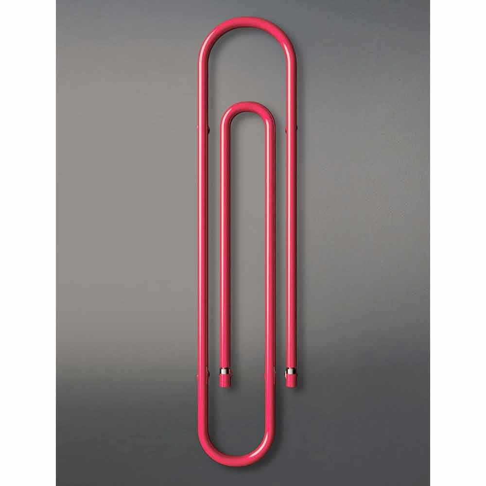 Radiador en forma de clip vertical de colores, en versión hidráulica, con un diseño moderno y divertido. El tema es la expansión de la forma de los objetos cotidianos y su cambio de función en un juego de reconocimiento inmediato y agrado. Disponible en diferentes colores y tamaños, ¡elige los que mejor se adapten a ti!
