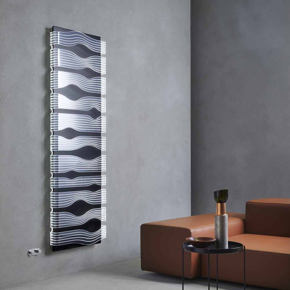 radiador en acero al carbono y metacrilato con luz LED apto para ambientes contemporáneos, fabricado