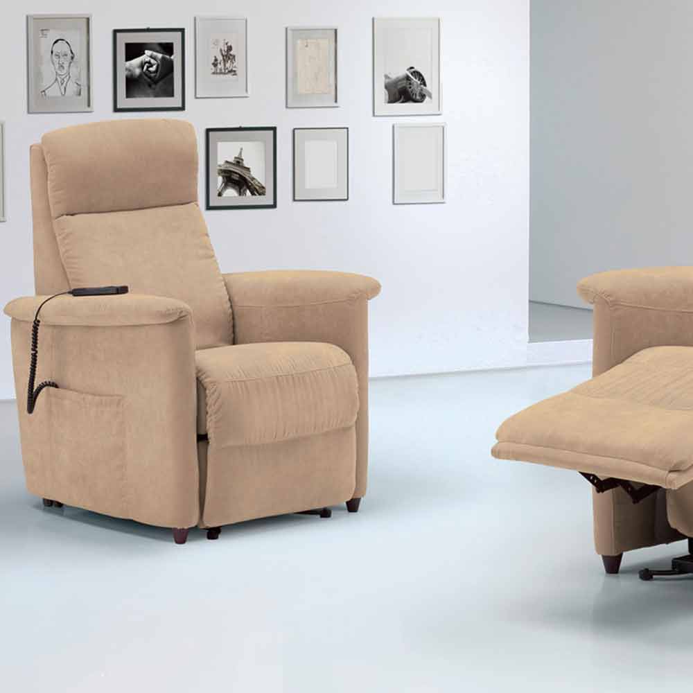 Sillón relax con elevador de motor Via Firenze 2, fabricado íntegramente en Italia.