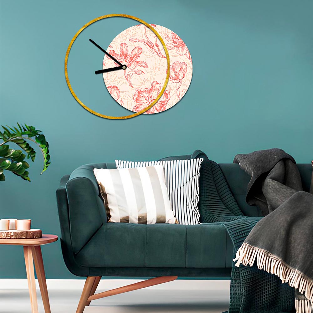 - Reloj de pan de oro y estampado de flores en tonos rosas.