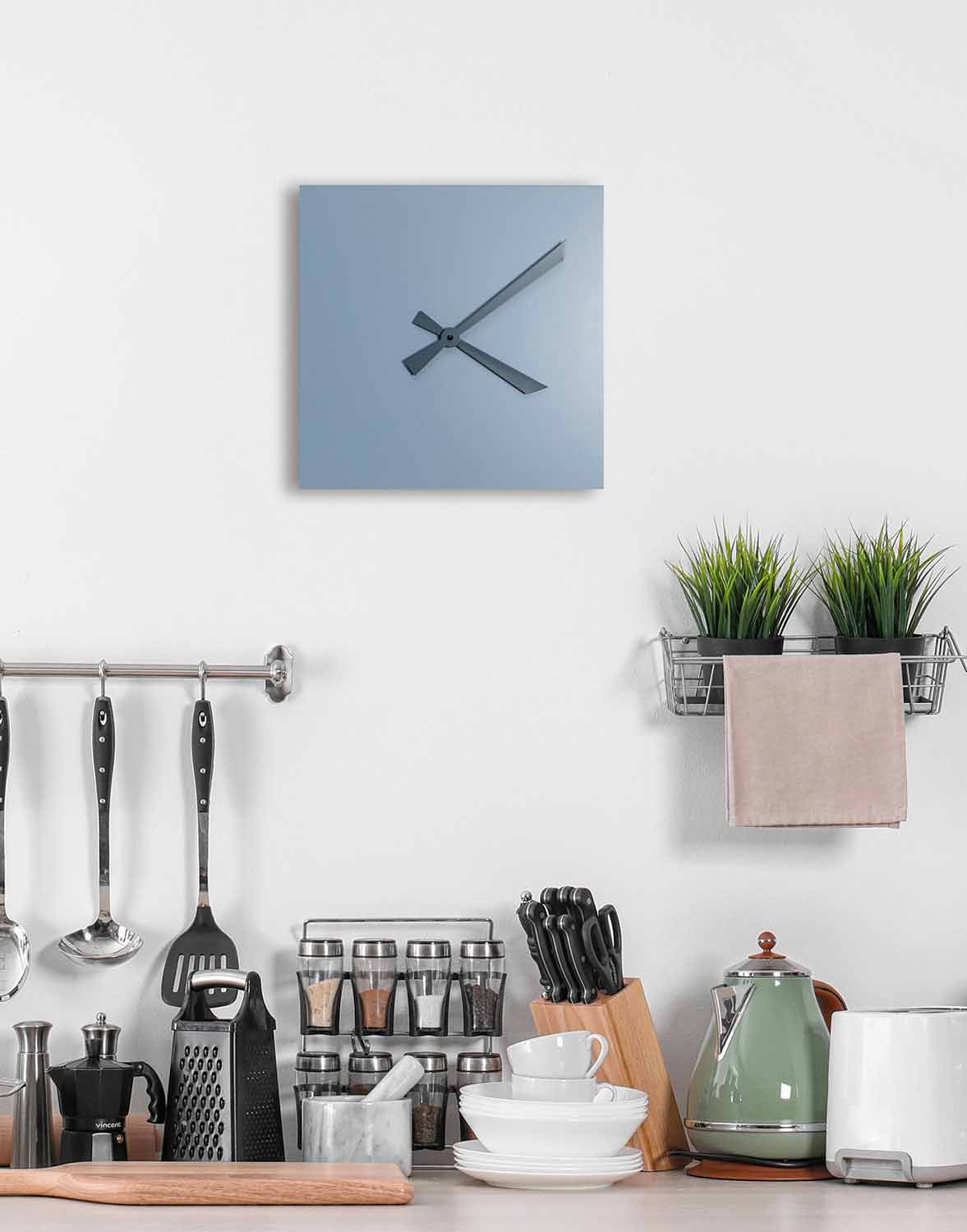 Reloj de pared cuadrado Avio y azul, diseño moderno en madera, hecho en Italia.