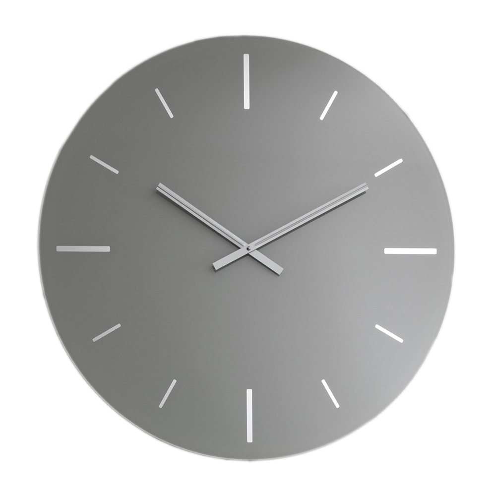 Este reloj de pared es totalmente de cristal acrílico disponible en varios acabados con un diseño redondo con movimiento de cuarzo, fondo de plata y las manos de aluminio.