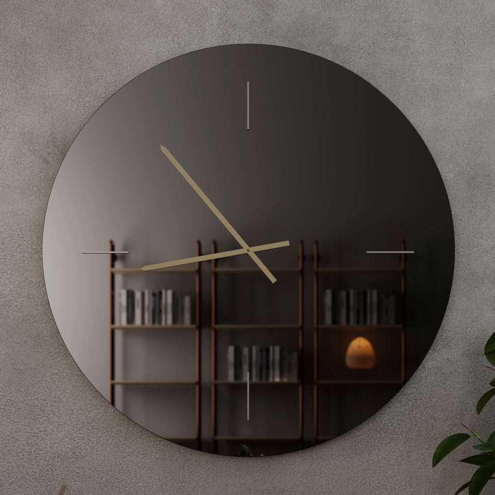 El reloj de pared de cristal ahumado es un accesorio de diseño moderno y sofisticado, perfecto para espacios contemporáneos y elegantes. La esfera de cristal ahumado crea un refinado efecto espejo que añade profundidad visual y realza la pared con detalles sutiles y elegantes.