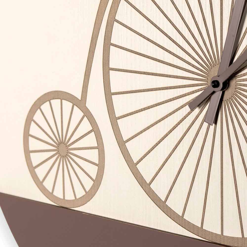 Reloj de pared en pizarra o madera de fresno con decoración de bicicleta marcada con láser, made in Italy.