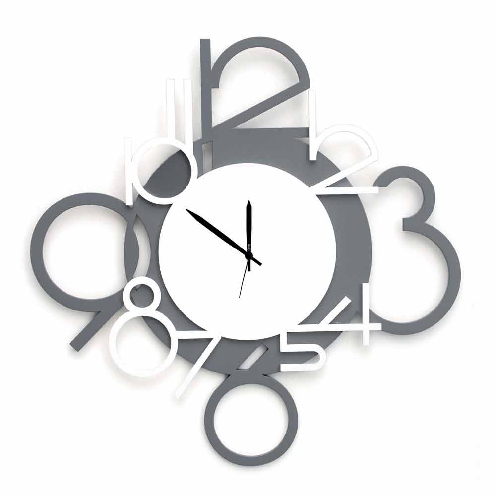 Reloj de pared de diseño grande en madera blanca y gris, especialmente hecho en Italia.