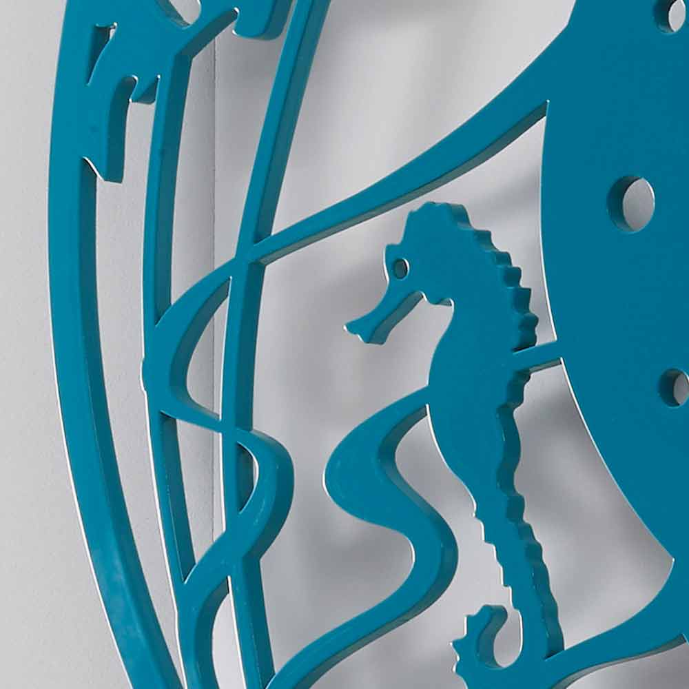 reloj de pared redondo que representa un acuario y la vida del fondo marino.