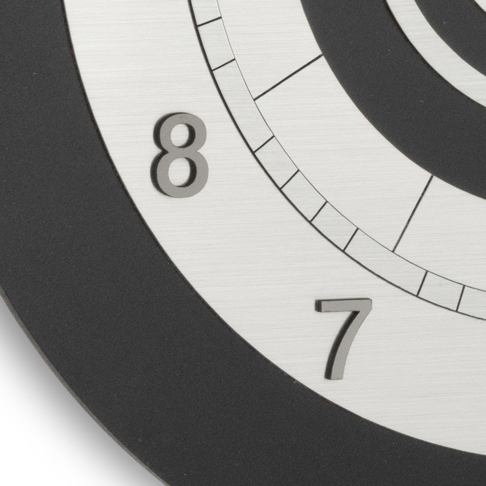 Una mezcla perfecta de diseño gráfico y funcionalidad, este reloj de pared fabricado en PVC semiespansado de alta densidad es un auténtico reclamo para quienes gustan de decorar con personalidad. El juego de círculos concéntricos crea un efecto visual hipnótico y dinámico que capta de inmediato la atención, transformando la pared en una verdadera obra de arte.