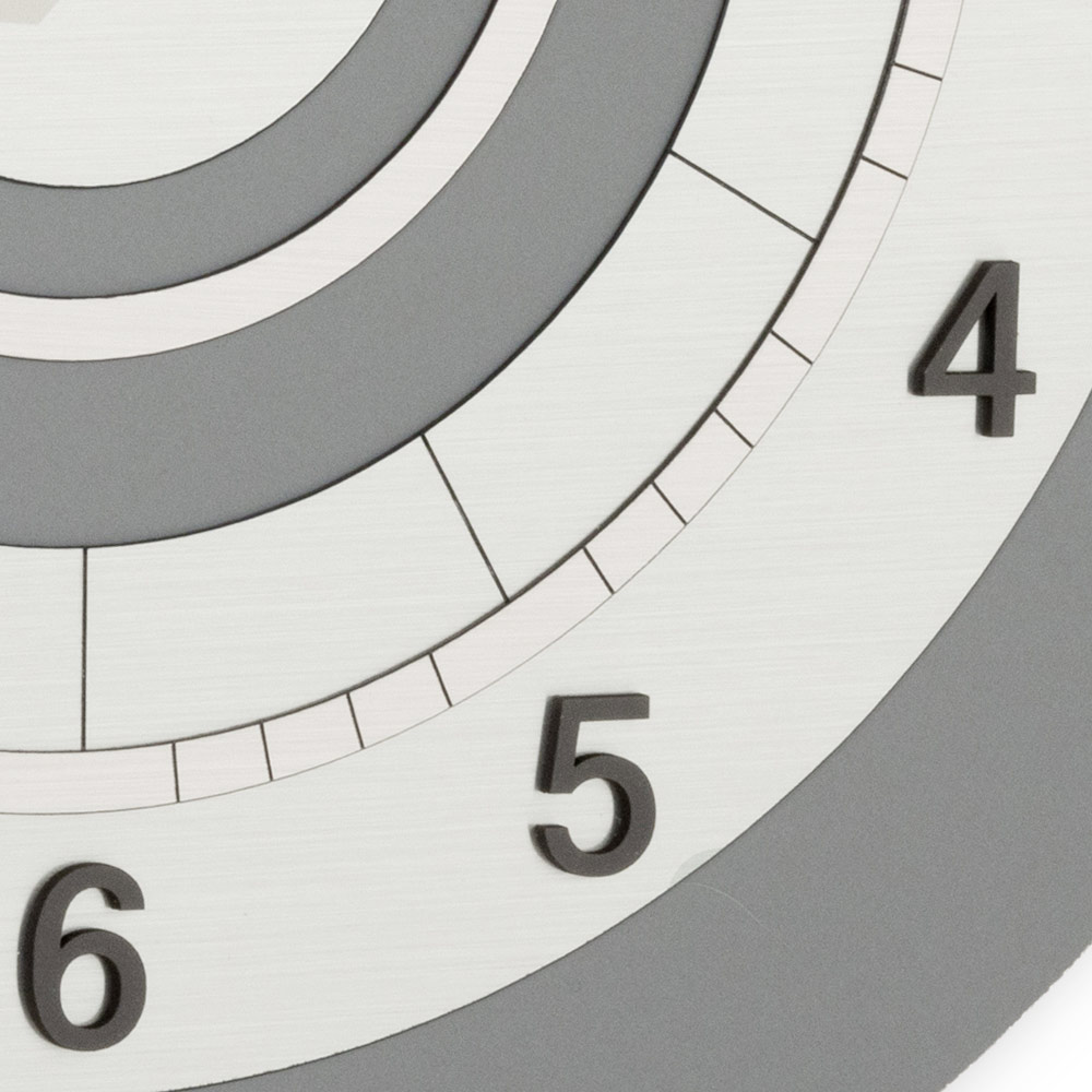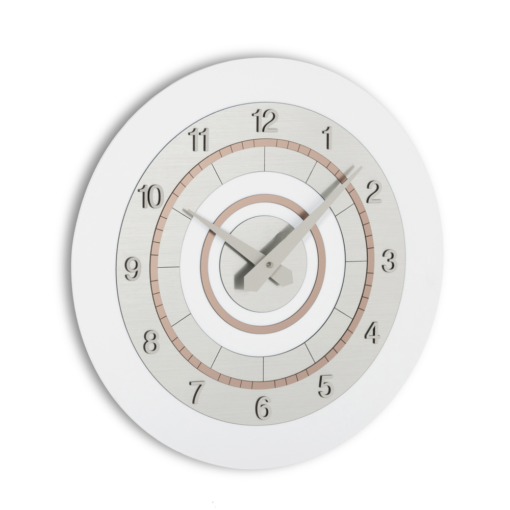 El marco abraza una esfera con números en relieve, elegantes y de fácil lectura. Las manecillas sutiles y los colores contrastados crean un equilibrio entre modernidad y sofisticación, perfecto para entornos contemporáneos, tanto domésticos como profesionales.