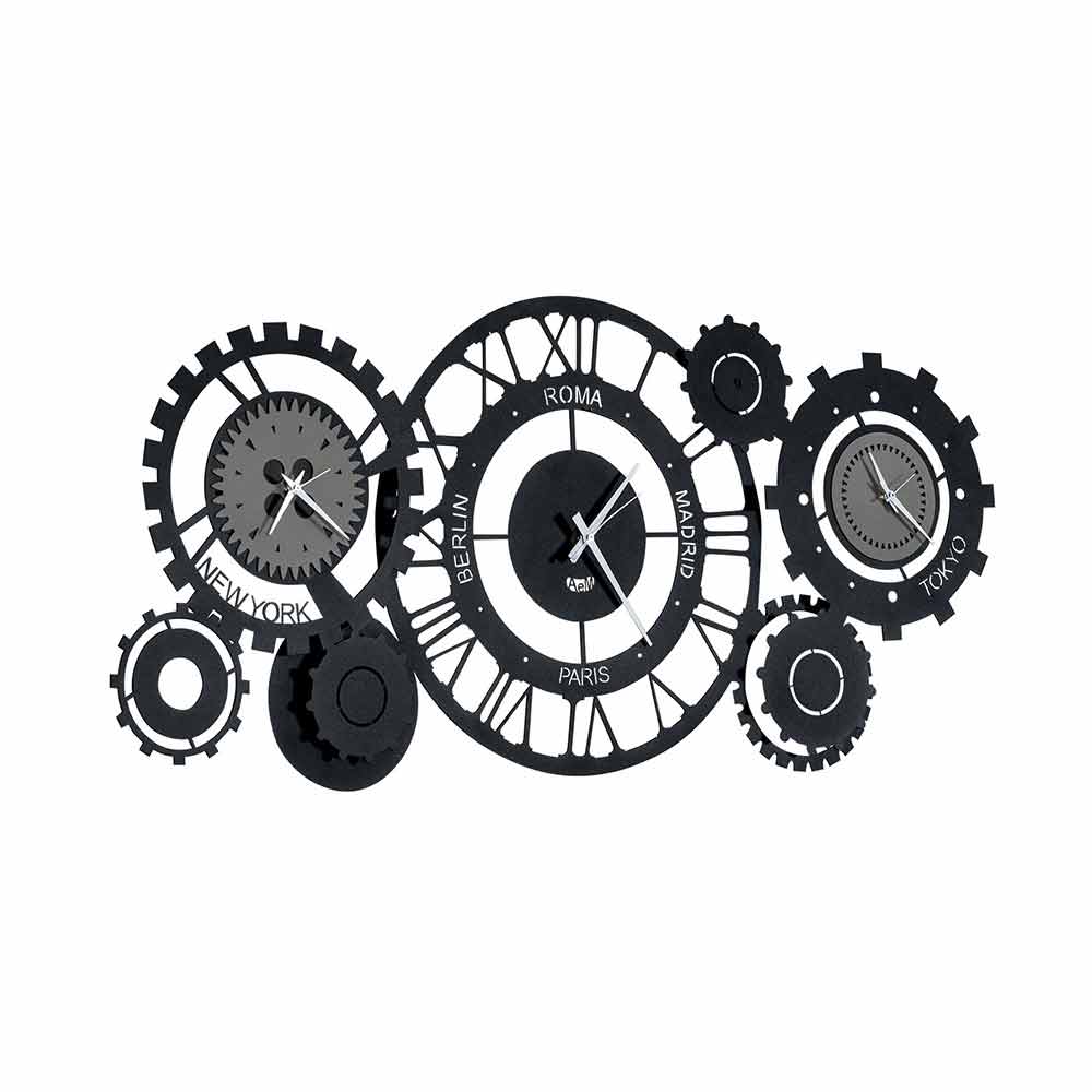 Reloj de pared de diseño moderno hecho a mano en Italia en hierro con tres husillos.