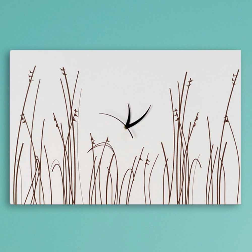 Gran reloj de pared rectangular de diseño moderno en madera blanca, fabricado en Italia.