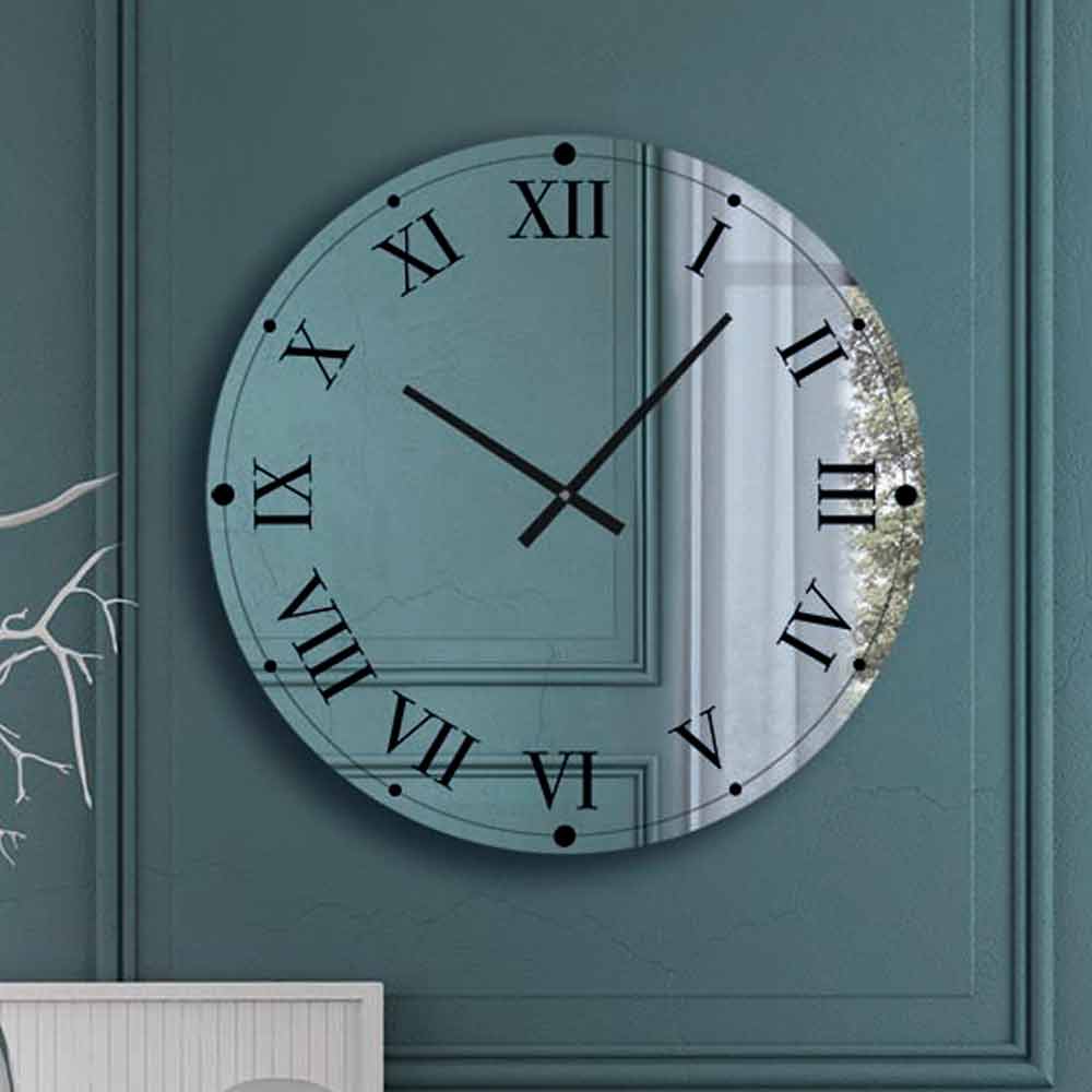 Reloj de pared redondo de diseño en cristal espejado Made in Italy.