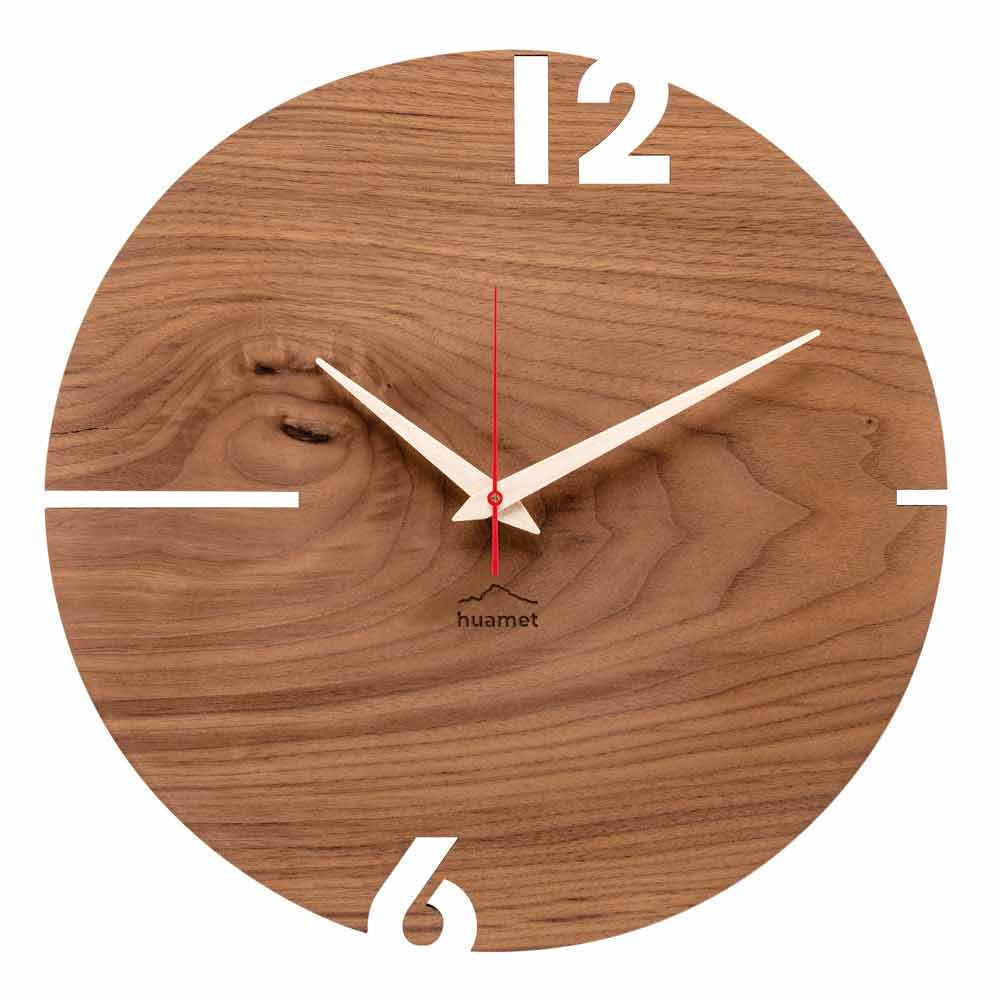 Reloj de pared redondo de diseño moderno en roble, pino o nogal; Hecho a mano en Italia.