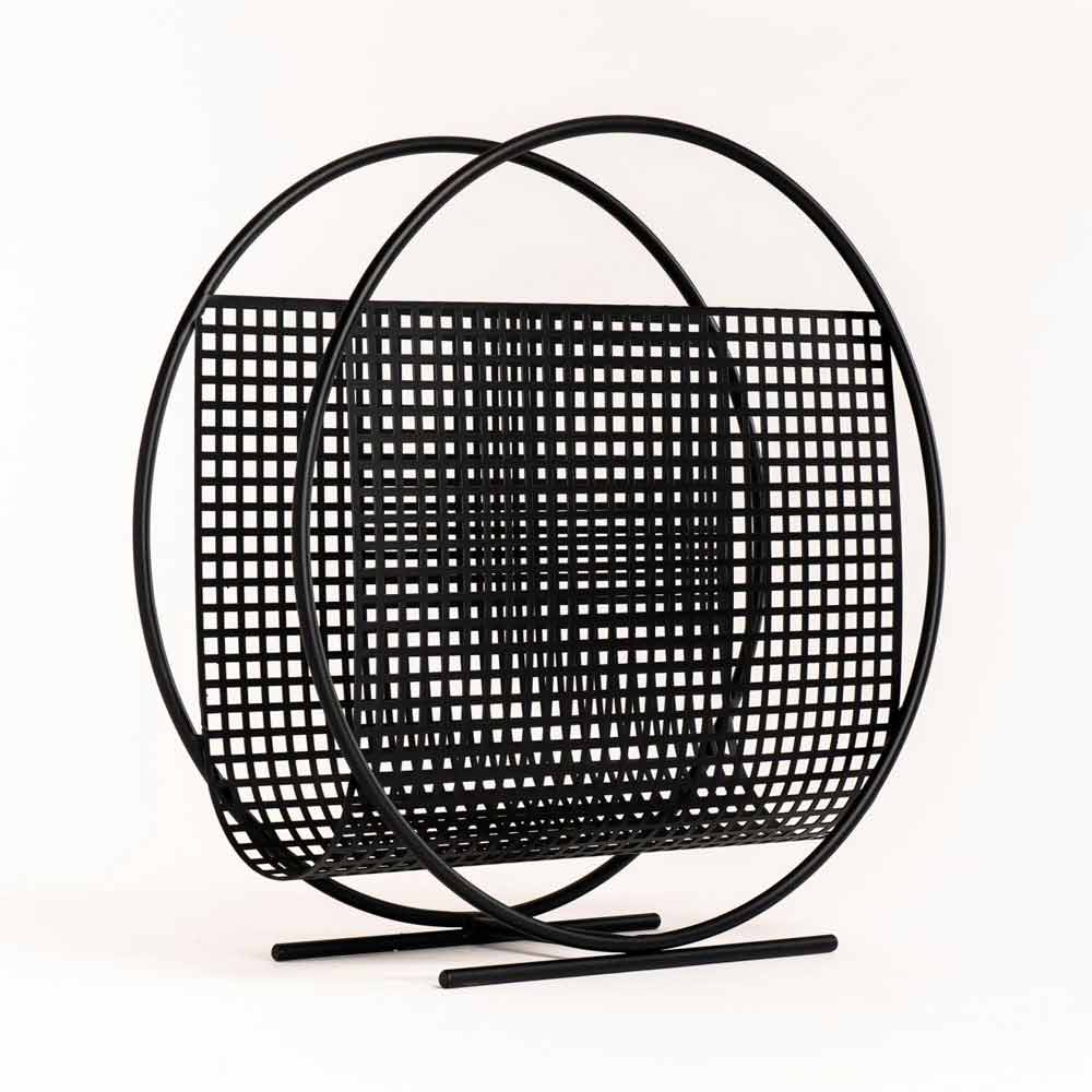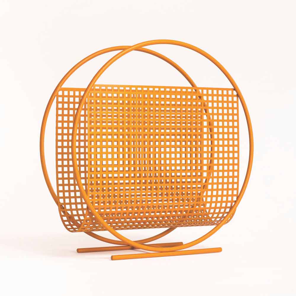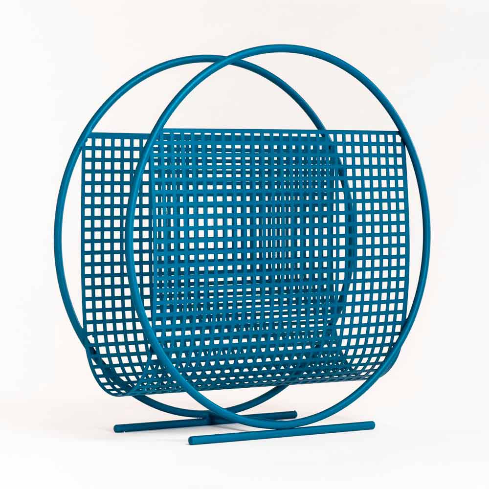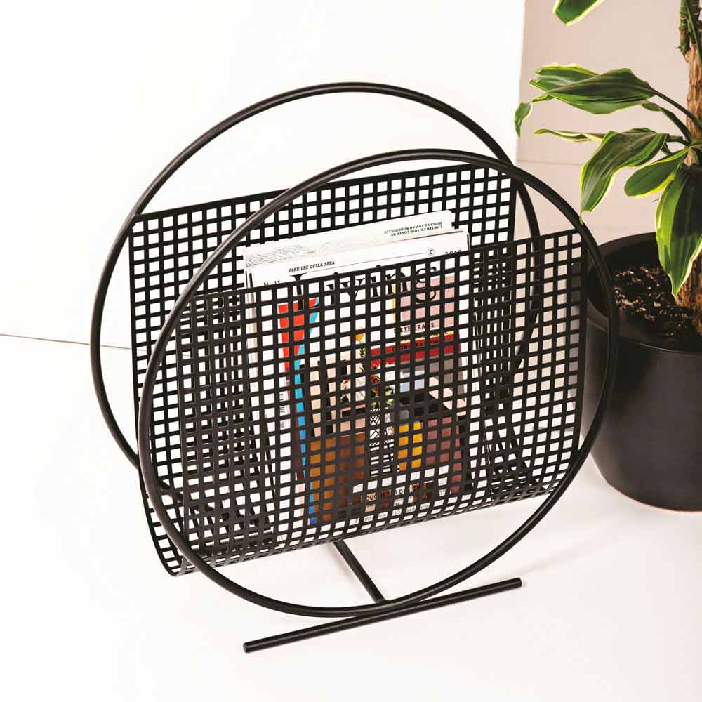 Revistero de suelo de diseño geométrico y moderno fabricado en acero Made in Italy.