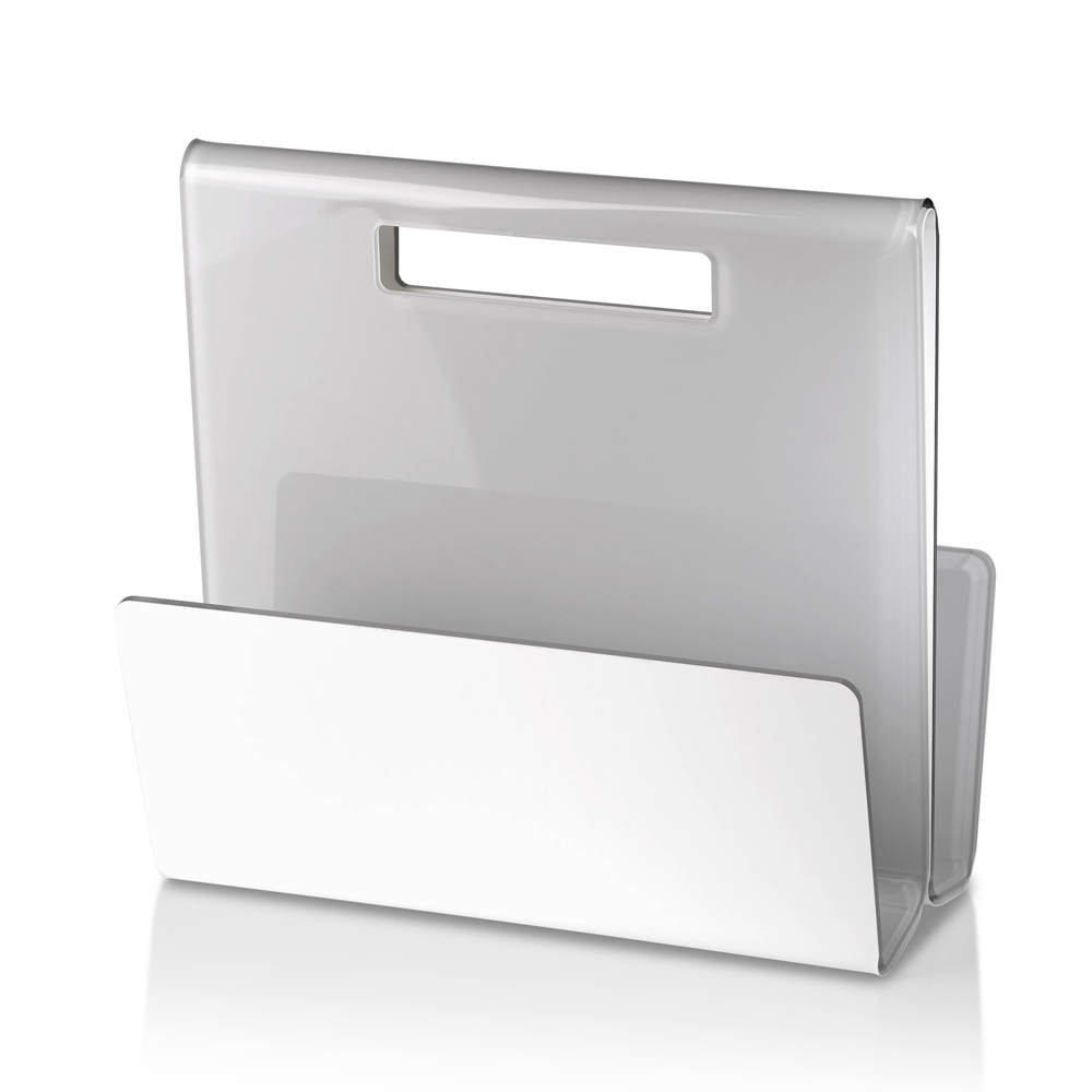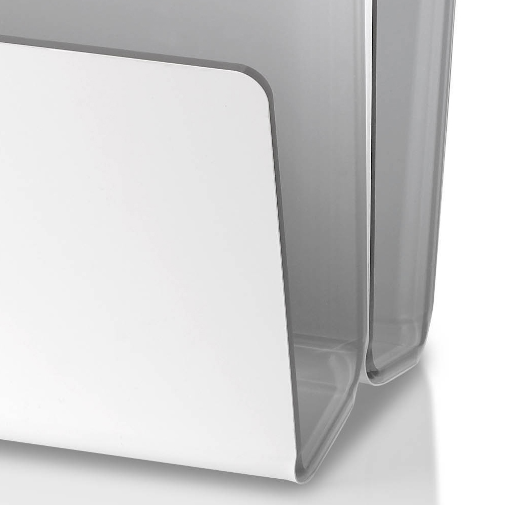Revistero de salón en cristal acrílico blanco o blanco y gris tórtola fabricado en Italia.