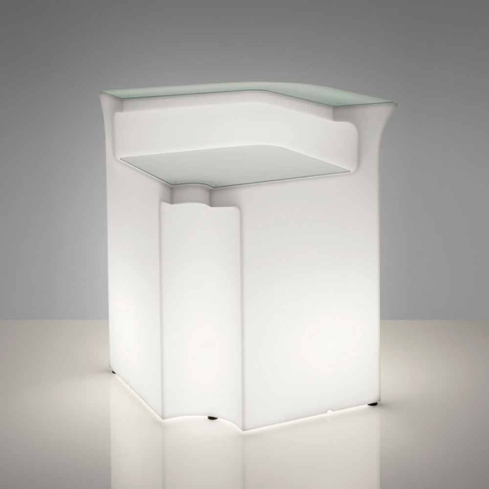 Está fabricado en polietileno de color blanco brillante y es apto para su uso como barra de bar o como rincón de recepción incluso en espacios reducidos, manteniendo la originalidad gracias al punto de luz que ofrece. Puede ser utilizado tanto individualmente como en combinación con otros accesorios de decoración luminosa de las líneas Break Line y Break Bar, podrá marcar la diferencia como un producto único capaz de hacer de su ambiente un lugar de moda fuera de los esquemas tradicionales.