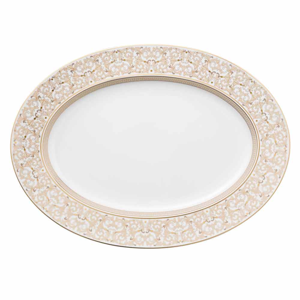 El plato ovalado de 40,5x30 cm de Versace forma parte de la refinada y lujosa colección de mesa Medusa Gala.