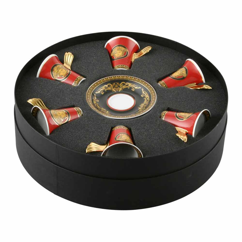 Juego de 6 tazas de espresso en porcelana Versace Medusa Red