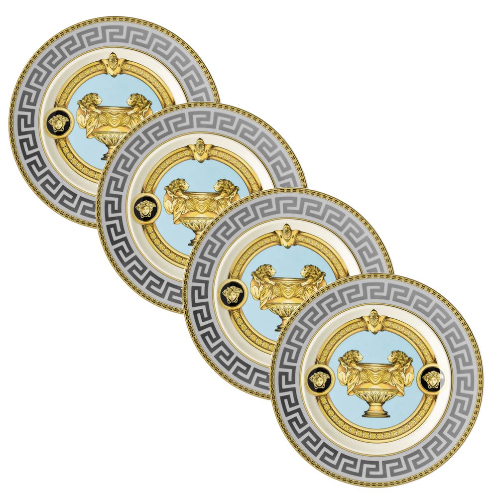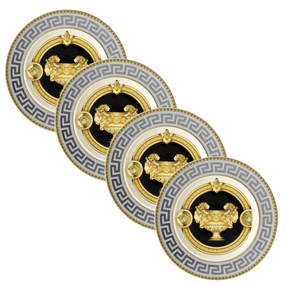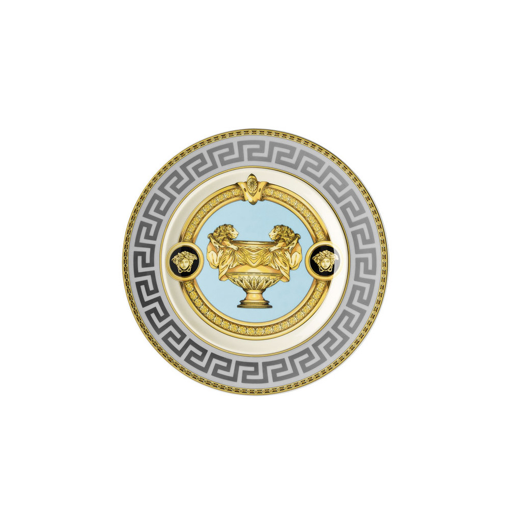 El plato para pan Versace Prestige Gala , elaborado en porcelana fina , es una representación perfecta del lujo y la elegancia atemporal . El sofisticado diseño presenta una decoración central con un ánfora dorada , símbolo de la realeza y la tradición, enmarcada por un atrevido motivo griego y detalles dorados que capturan la esencia de la casa. Disponible en fondo negro o azul claro, ofrece una opción de estilo para cada ocasión.