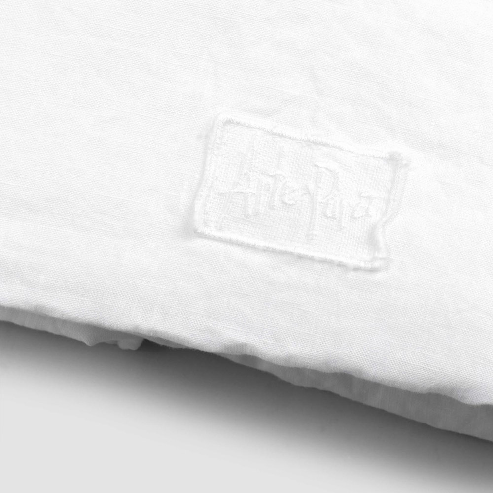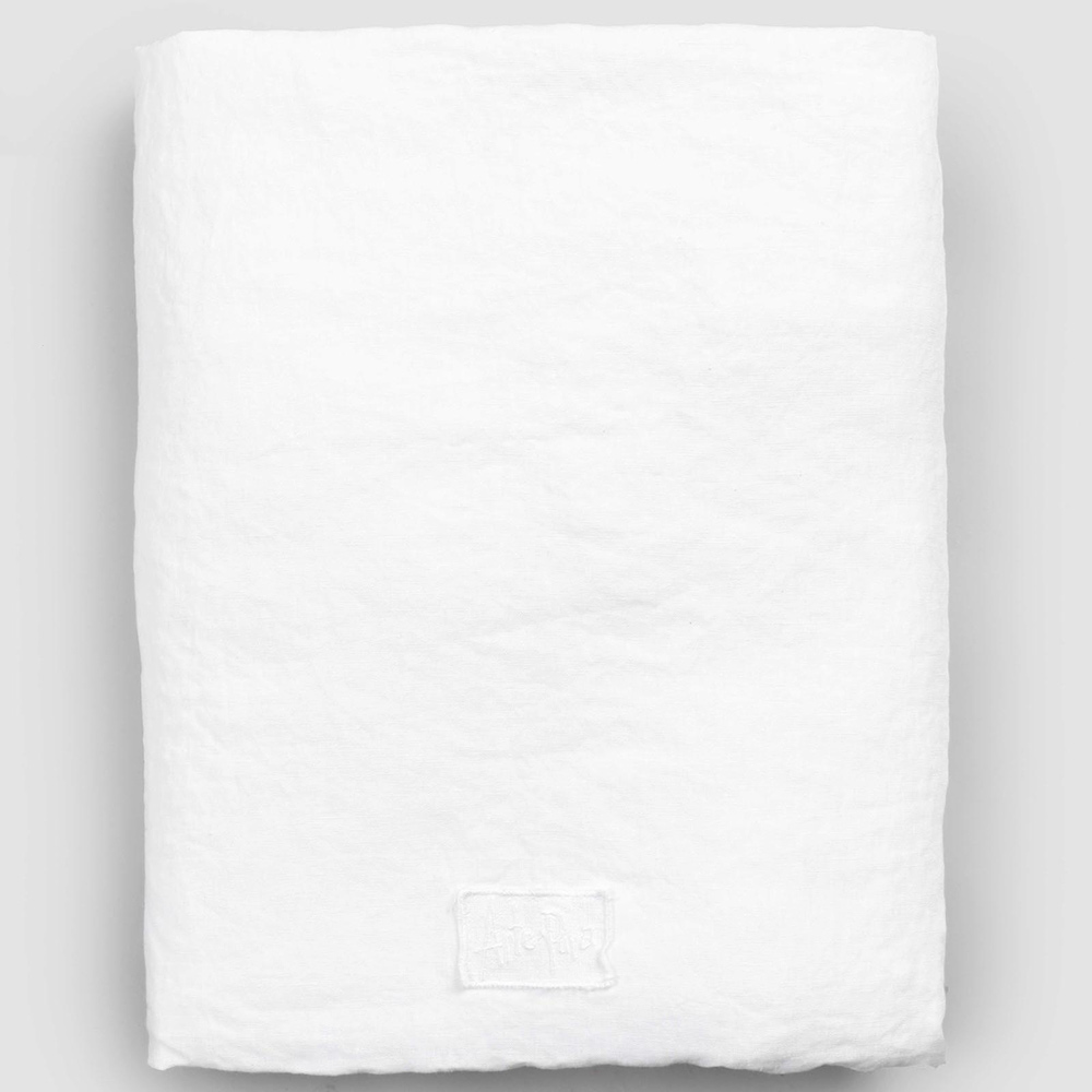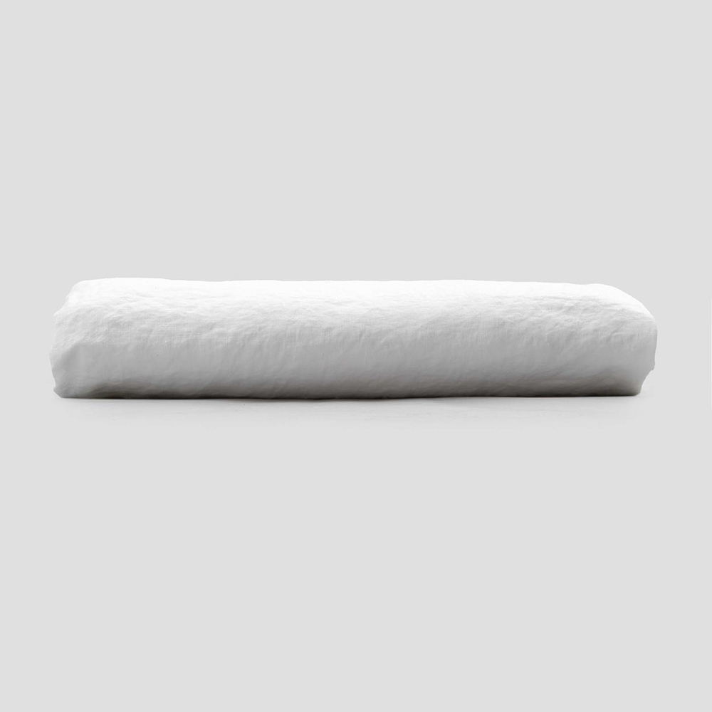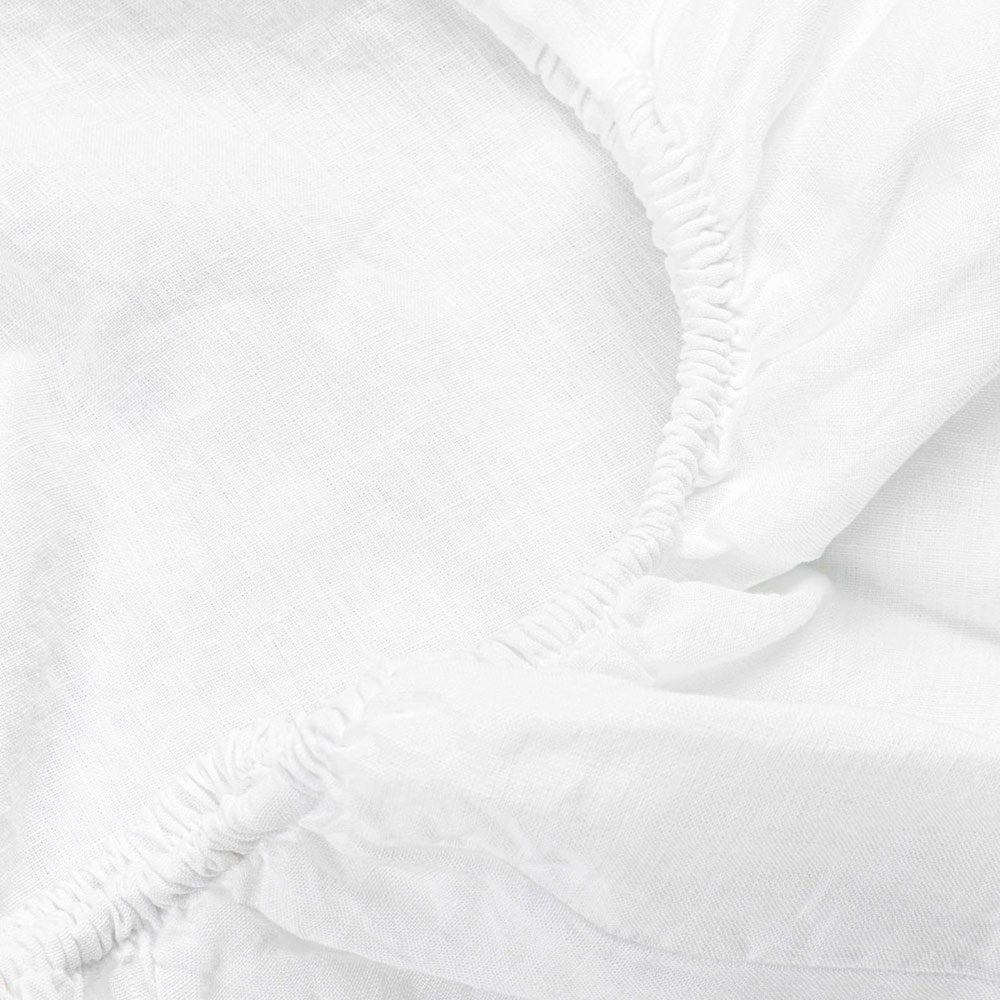 Sábana bajera para cama doble en lino blanco puro, artesanía de diseño de lujo made in Italy.