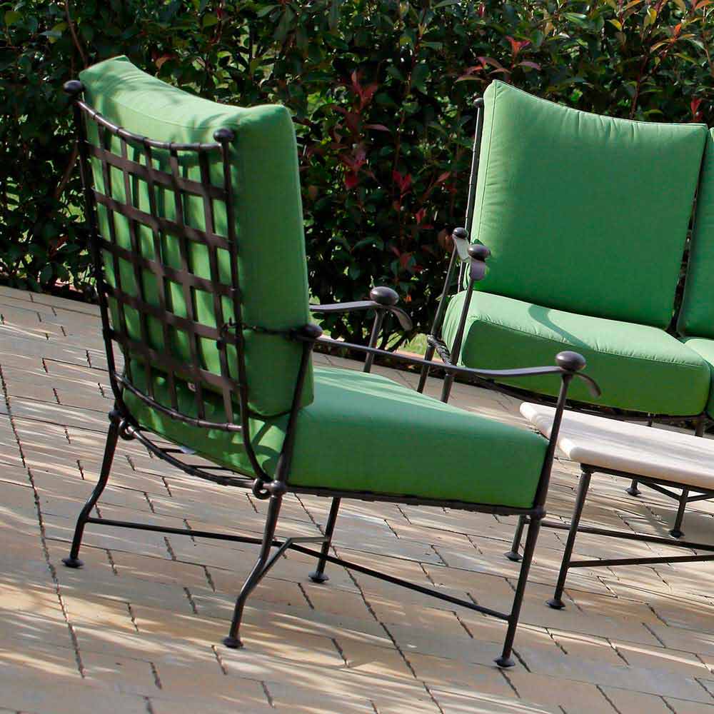 Conjunto de salón para exterior realizado artesanalmente en hierro pintado con cojines. Fabricado en Italia.