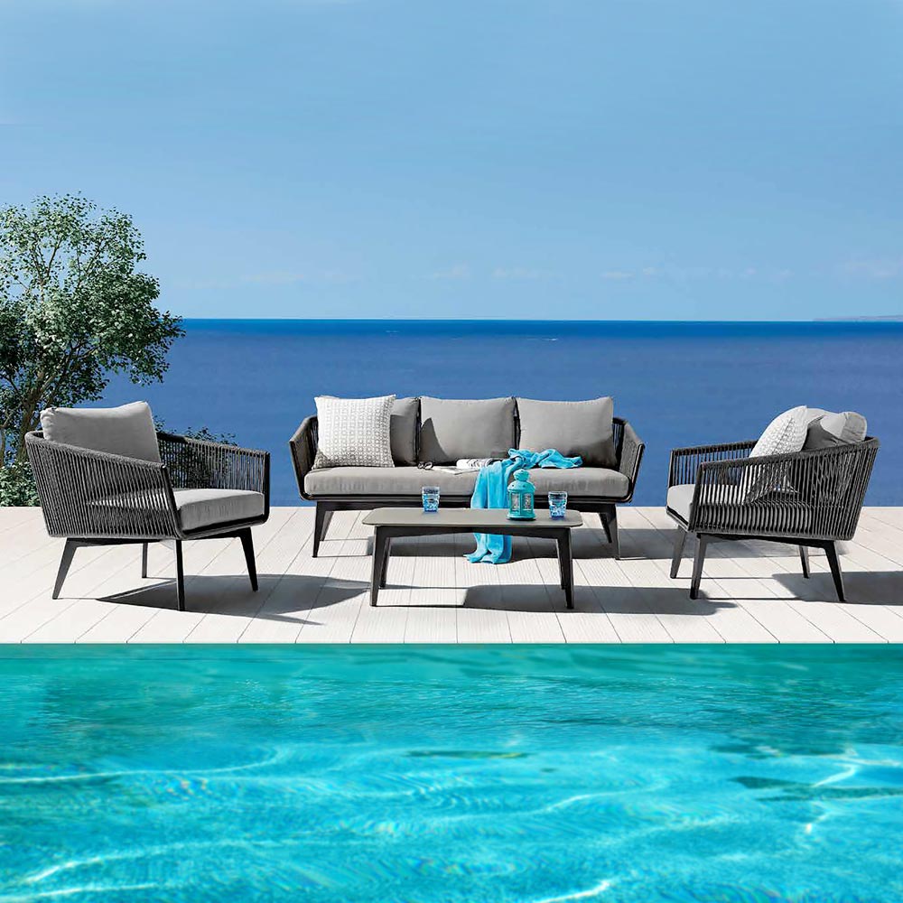 Conjunto de salón de exterior en aluminio y cuerda con cojines
