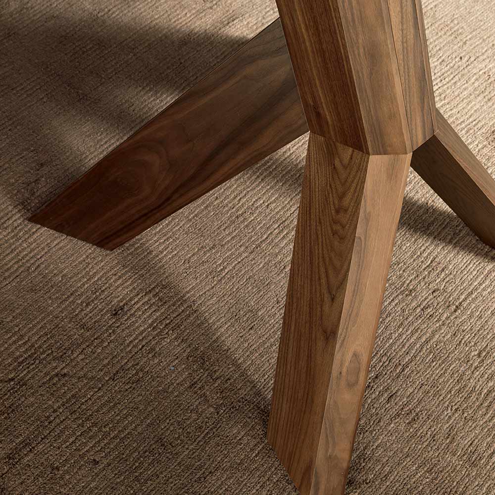 Esta mesa de comedor tiene una estructura de 4 patas en madera contrachapada con acabado en nogal canaletto y un barril en forma de vidrio templado transparente.