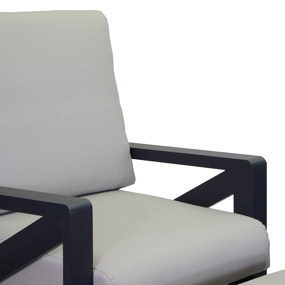 La estructura de aluminio garantiza durabilidad y un mantenimiento mínimo, mientras que los cojines extraíbles e hidrófugos prometen facilidad de uso y longevidad, incluso en los días más húmedos. Cada pieza del conjunto está diseñada para resistir las inclemencias del tiempo, garantizando que su inversión se mantenga bella año tras año.
