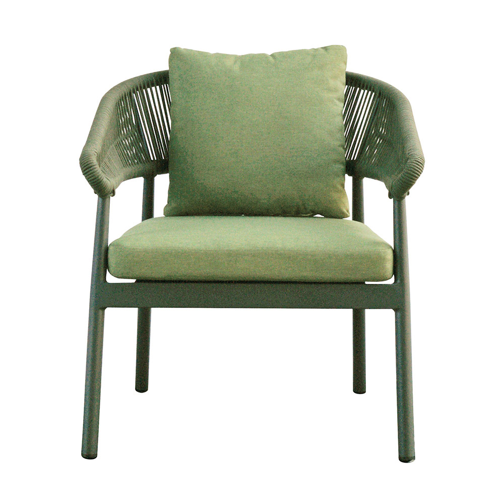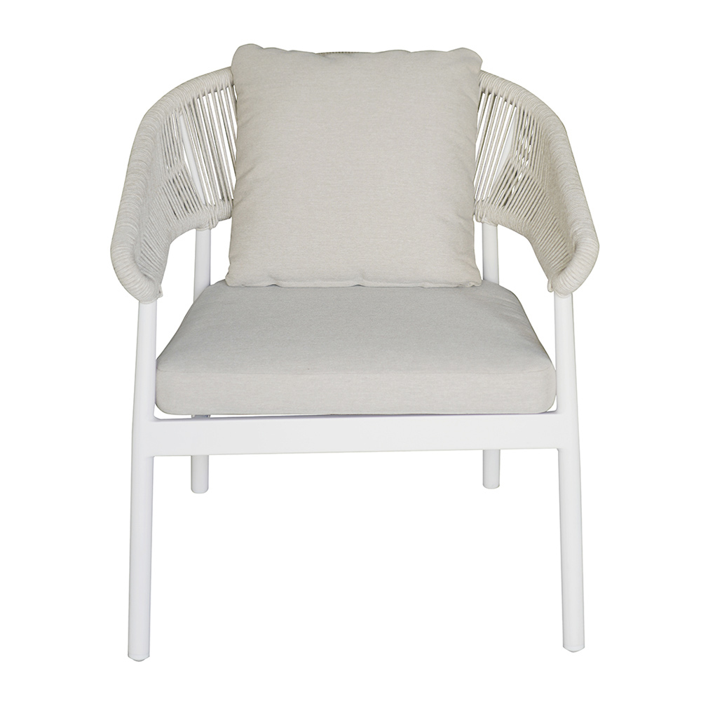 2 sillones: estructura de aluminio, respaldo de cuerda, cojín de tela desenfundable