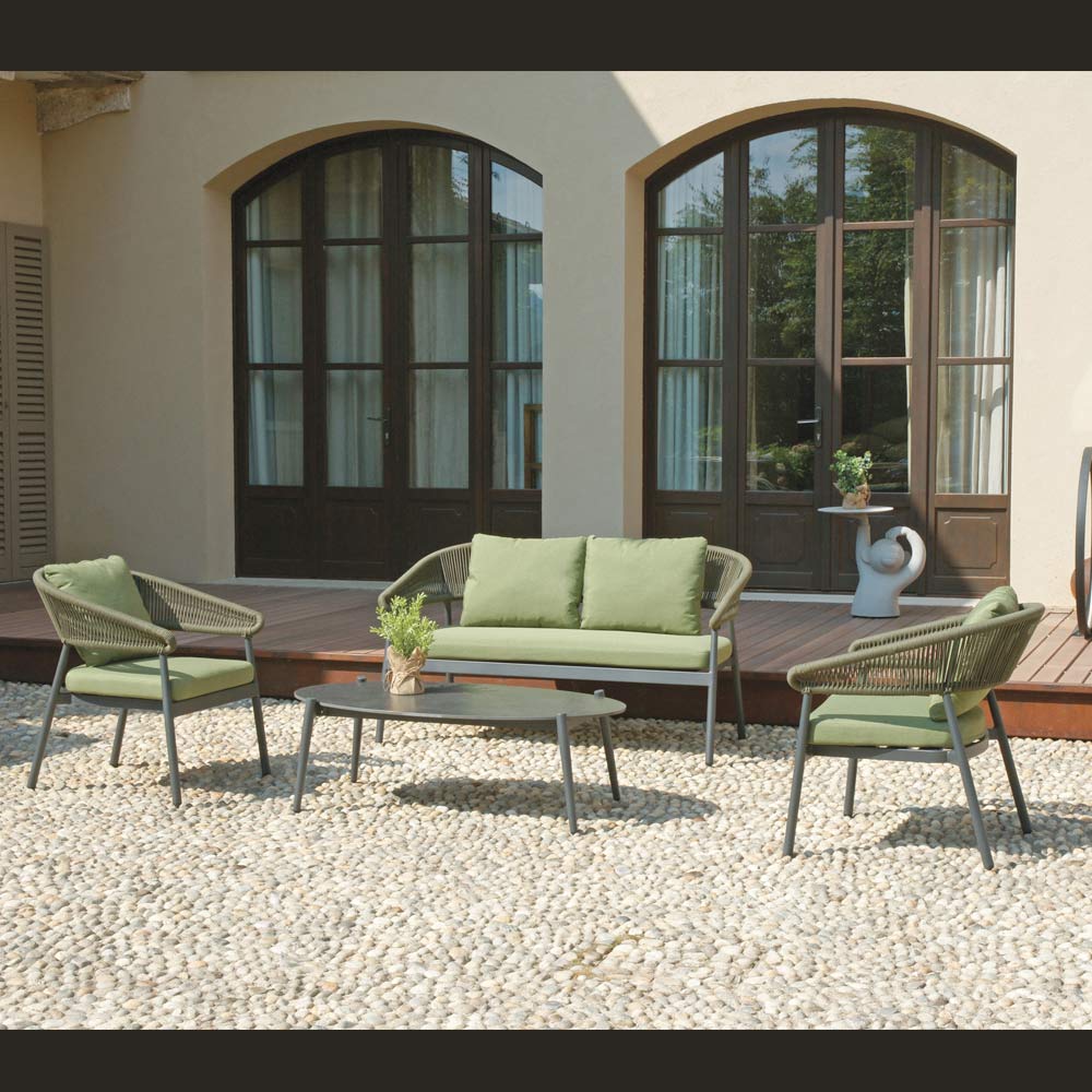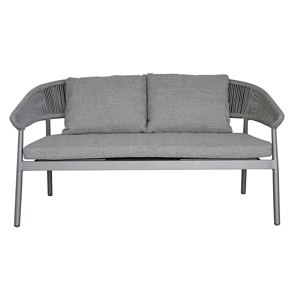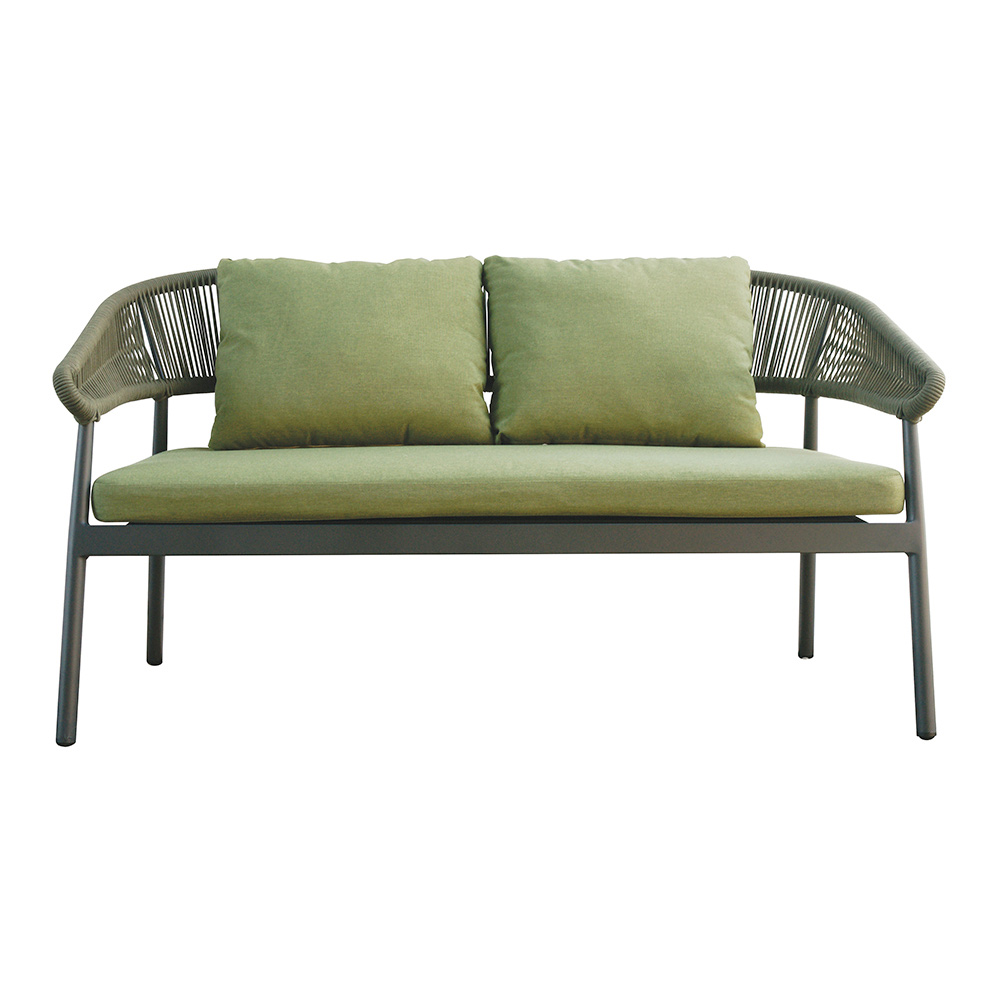 1 sofá: estructura de aluminio, respaldo de cuerda, cojines en tela desenfundable