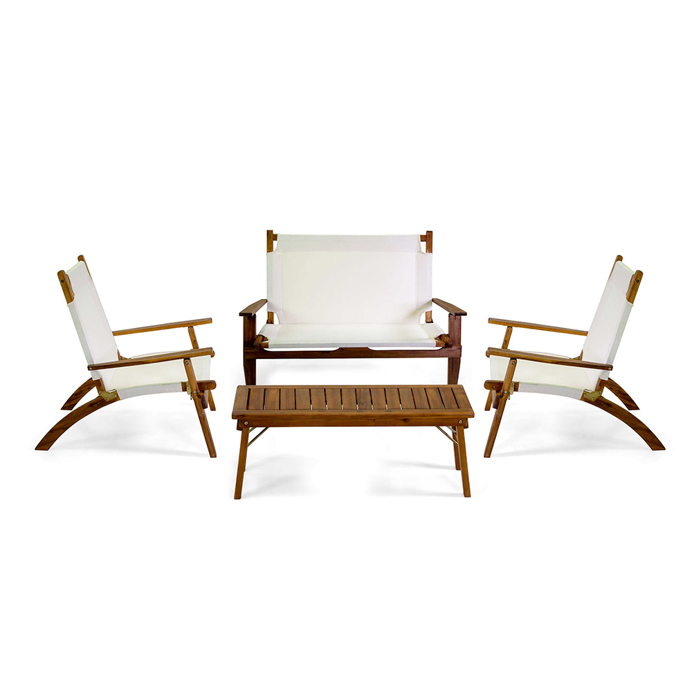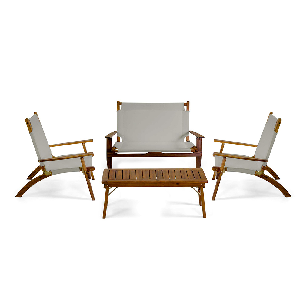 Este conjunto de salón de madera elegantemente diseñado es ideal para aquellos que buscan comodidad y estilo en un solo producto. Perfecto para relajarse al aire libre, este conjunto incluye dos sillones , un sofá y una mesa de café , todos ellos con una resistente estructura de madera curvada y detalles de tela duradera. Las líneas limpias y el uso inteligente de los materiales lo convierten en la opción ideal para cualquier espacio exterior , desde el jardín hasta la terraza, ofreciendo un rincón de pura relajación donde disfrutar de momentos de paz o recibir a amigos y familiares. Los acogedores asientos garantizan el máximo confort, convirtiéndolo en el lugar perfecto para cualquier ocasión de relax al aire libre.