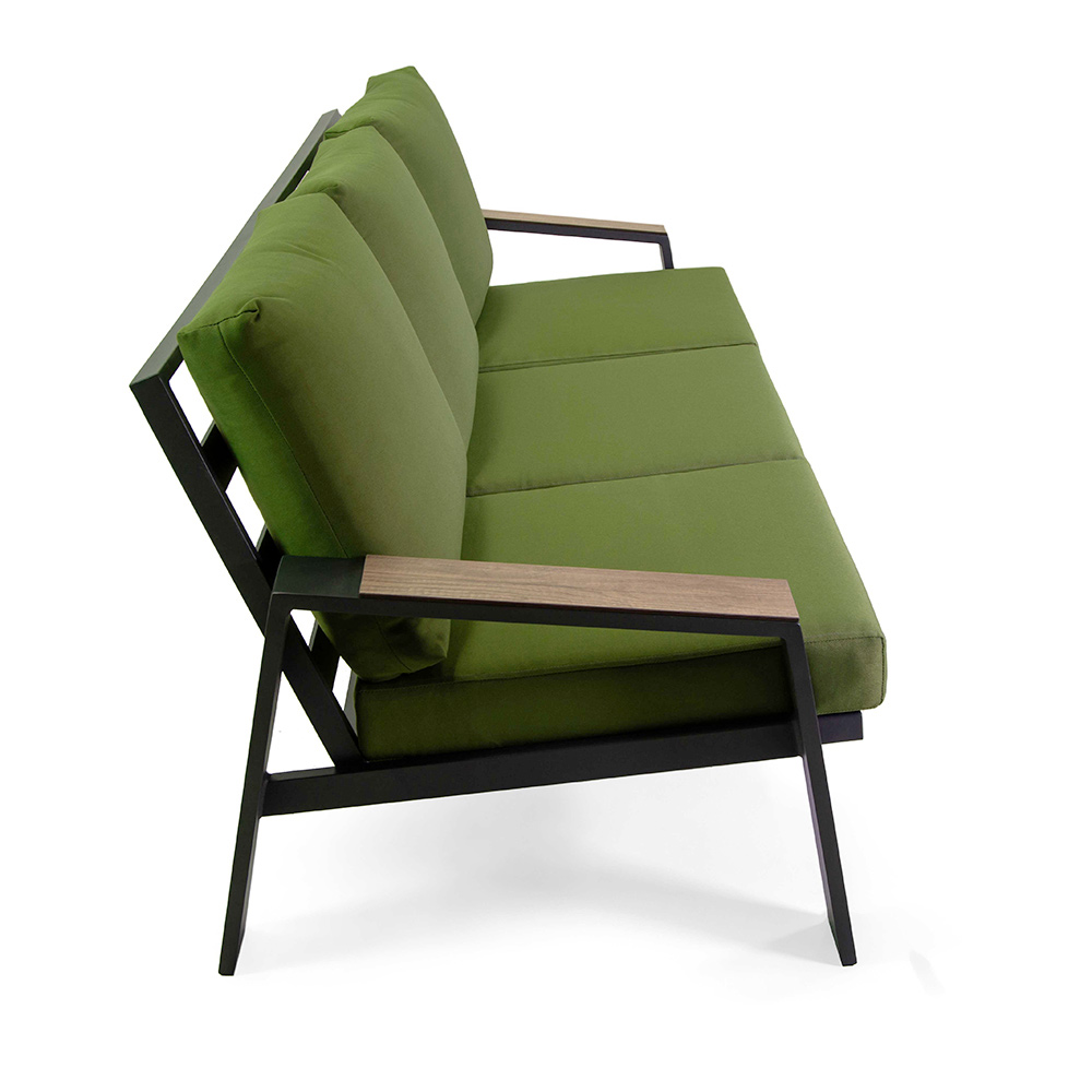Este conjunto de salón de aluminio verde oliva , enriquecido con cojines lujosamente acolchados , ofrece un ambiente fresco y natural para su espacio exterior. El conjunto incluye un sofá de tres plazas , dos sillones individuales y una robusta mesa de café con tablero HPL efecto madera, perfecta para crear un rincón de conversación elegante y acogedor en su jardín o patio. El diseño moderno con líneas limpias y colores brillantes se integra perfectamente en cualquier contexto al aire libre, añadiendo un toque de estilo y comodidad.