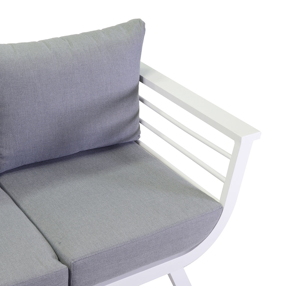 - Aluminio blanco y cojines grises