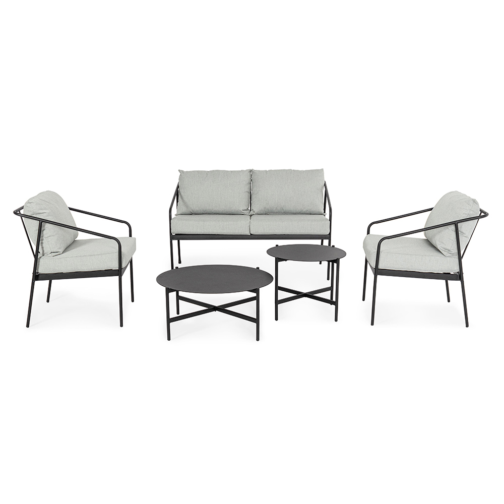El cuadro se completa con la pareja de mesas de centro coordinadas , perfectas para tener a mano bebidas refrescantes o adornos, combinando practicidad con un estilo chic y minimalista . Este conjunto de salón es más que un simple grupo de muebles: es una invitación a crear recuerdos en la comodidad de su propio jardín, donde el diseño y la función se unen para garantizar momentos de verdadero placer y hospitalidad sofisticada .