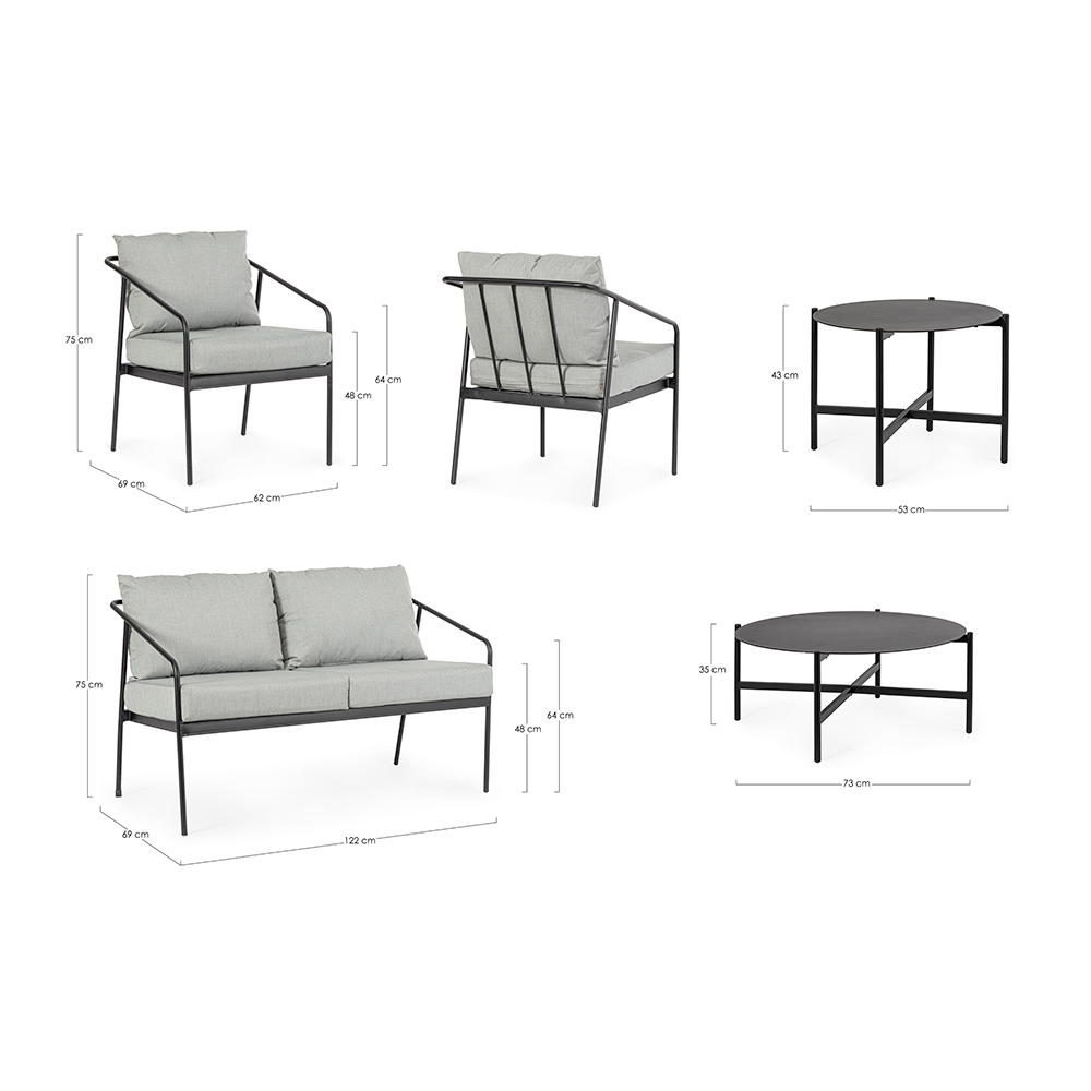 Este conjunto de salón de jardín es una verdadera oda al diseño moderno y al confort al aire libre . Cada pieza, desde los sillones individuales hasta el sofá de dos plazas , ha sido diseñada para ofrecer una experiencia de relajación inigualable, gracias a los suaves cojines de asiento y respaldo se adaptan a cualquier paisaje o estilo de mobiliario de exterior. La estructura de acero es robusta y está diseñada para resistir en el tiempo, pero la forma sinuosa aporta al conjunto una ligereza visual que realza el ambiente sin apelmazar.