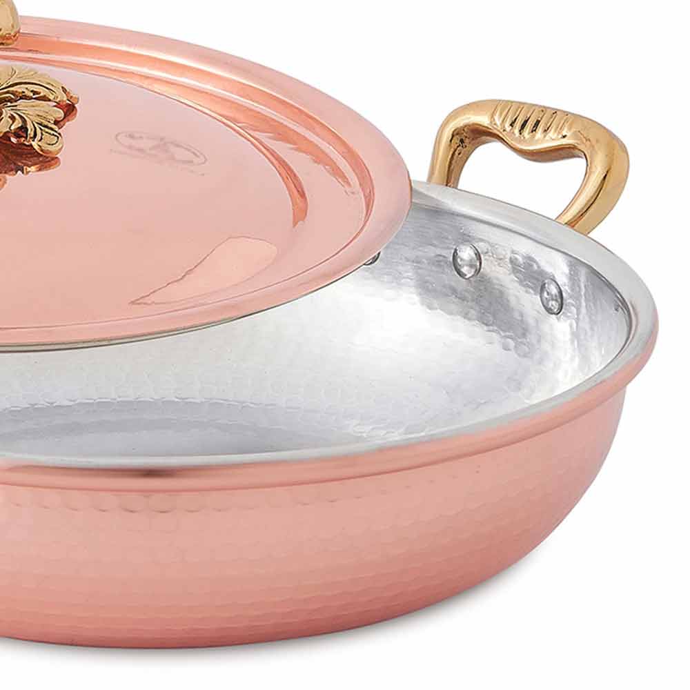 Sartén de Cobre Estañado Diseño Redondo con Tapa 20 cm - Mariastella
