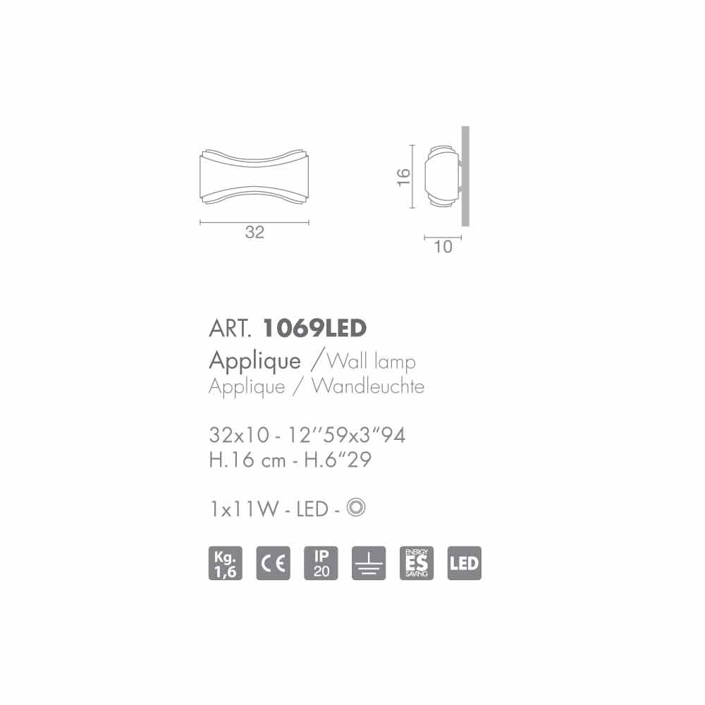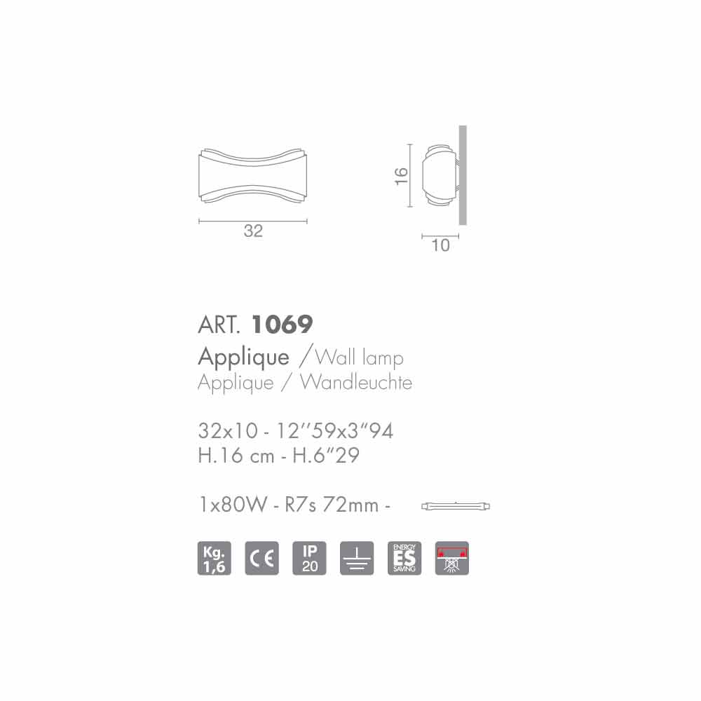 Selene jónica apliques de acero y vidrio 32x10 H16cm hacen en Italia