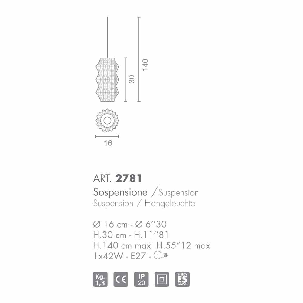 Selene Origami lámpara de techo de vidrio soplado Ø16 H 30 / 140cm