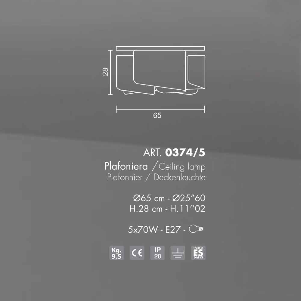 El papiro es una increíble colección rica y versátil, que reúne todos los tipos de lámparas divididos en varias variaciones de forma, tamaño y número de fuentes de luz. El difusor, con una forma particular, es de vidrio extra claro y está disponible en varios acabados. Preparado para el 'uso de E 27 5 bombillas 70W (no incluido).
