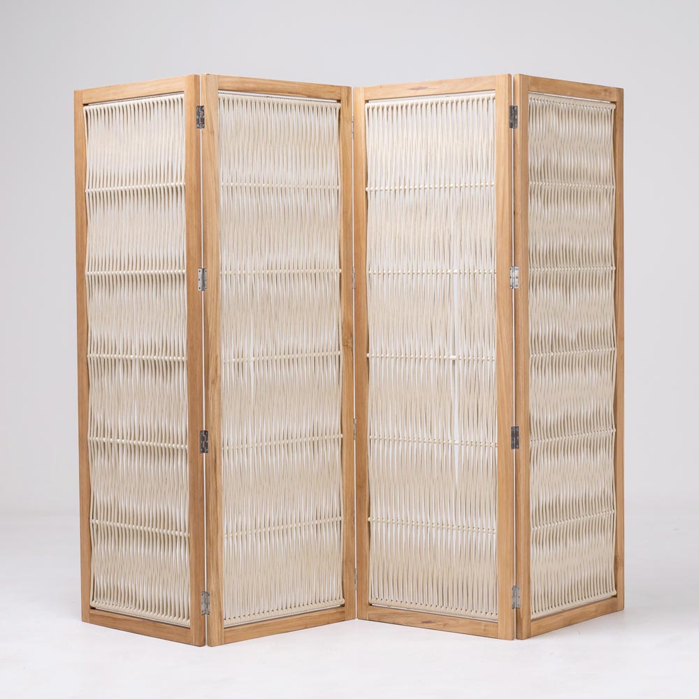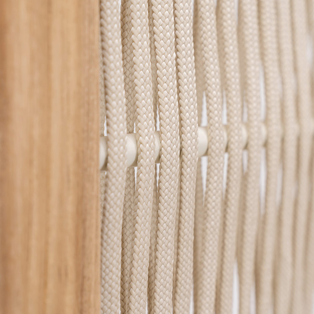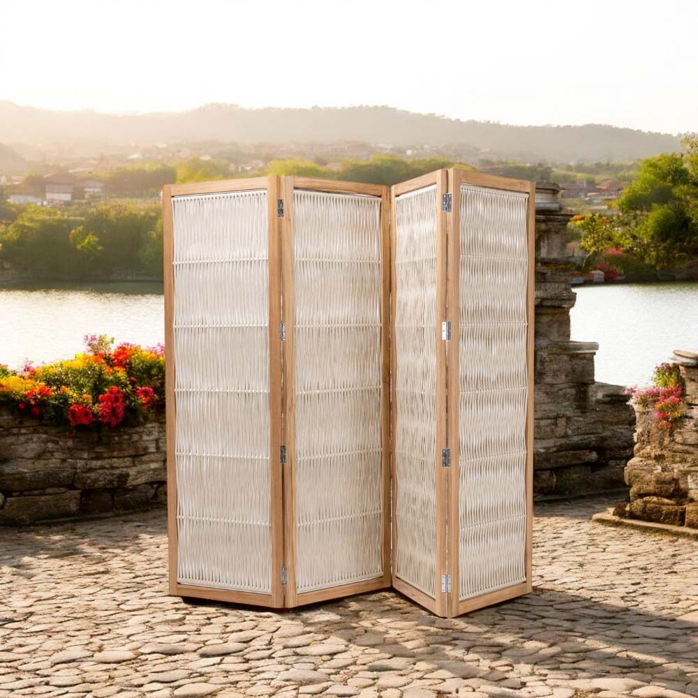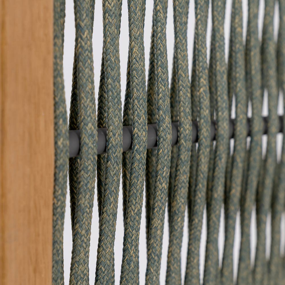 Separador de jardín en teca y aluminio, tejido de cuerda