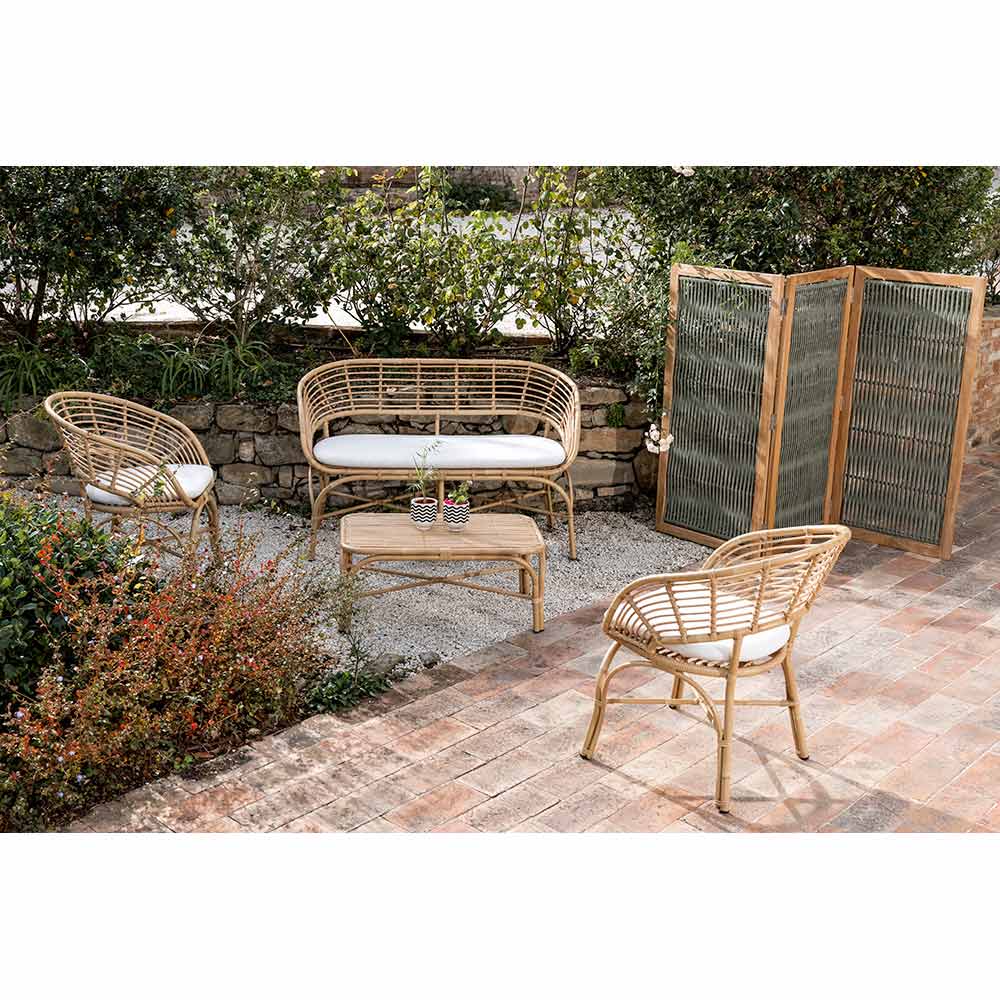 No recomendamos colocar muebles de teca nuevos en el exterior sobre suelos de piedra porosa, al menos hasta que el proceso de aparición de aceite haya remitido. No recomendamos dejar los cojines en contacto directo con las superficies de teca durante este proceso, ya que lo más probable es que se manchen (los tejidos manchados con aceite de teca natural aún pueden limpiarse con agua y jabón neutro). La cantidad de aceite que sale de la teca durante los primeros meses será más abundante y, por tanto, más propensa a causar manchas en superficies y tejidos.