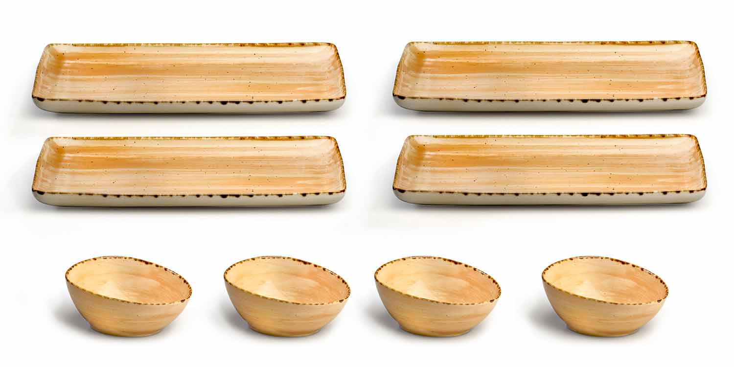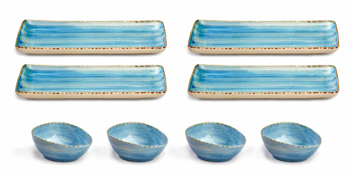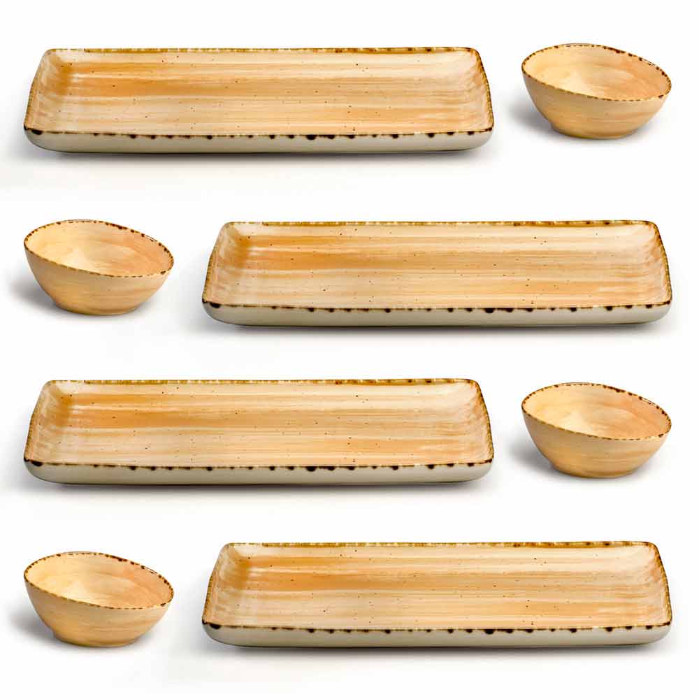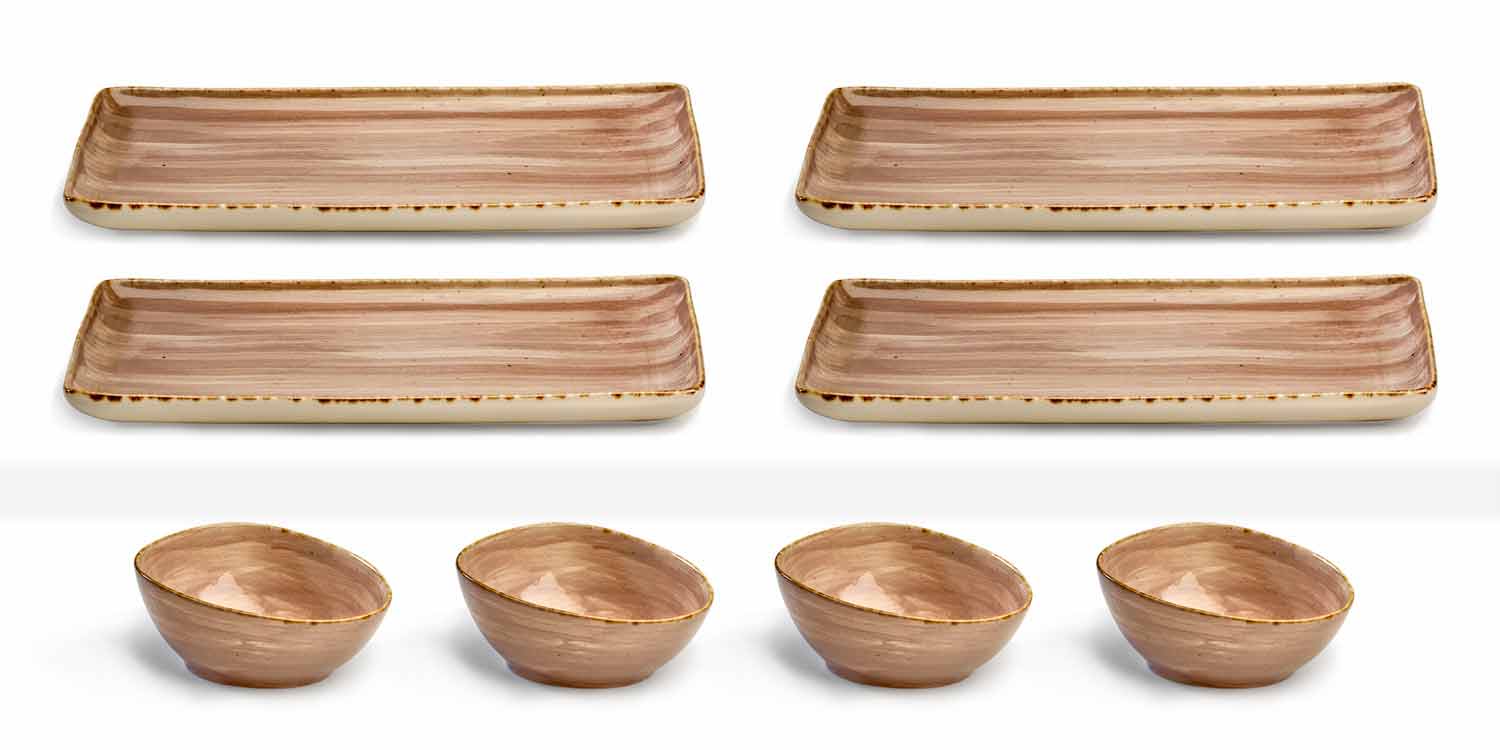 - n. 4 plato rectangular de 30x18 adecuado para aperitivos, primeros platos, platos principales, sushi, brunch, verduras a la parrilla, postres.