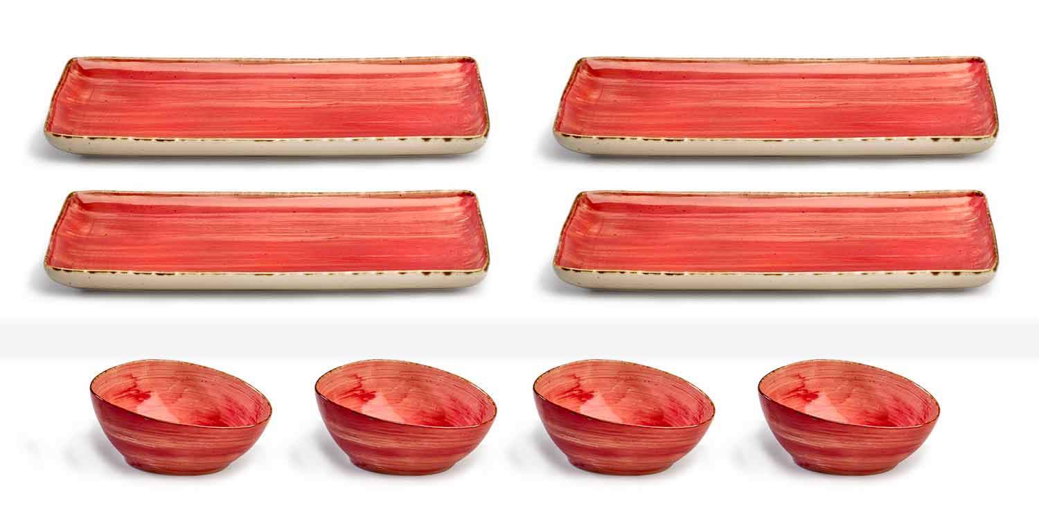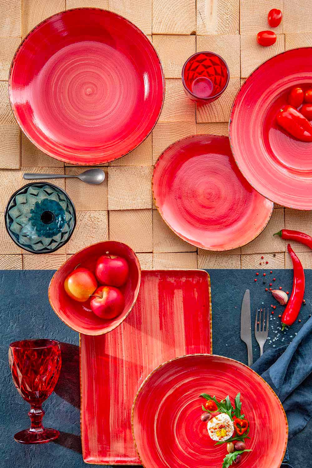 - rojo picante: un color picante y fascinante capaz de realzar las líneas suaves y persuasivas de los platos. Un toque de rojo atractivo y profundo para toques individuales convincentes al servir.