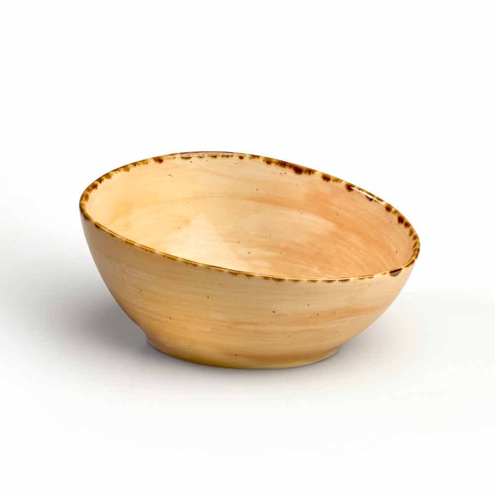 - Originalidad : las formas irregulares, las decoraciones con pinceladas imprecisas y con un efecto moteado acabado y pintado a mano y el borde envejecido, resaltan el estilo rústico y terroso de la colección. Cada diferencia entre una pieza y otra debe considerarse como una característica adicional de valor y personalidad, que hace que cada pieza sea única.