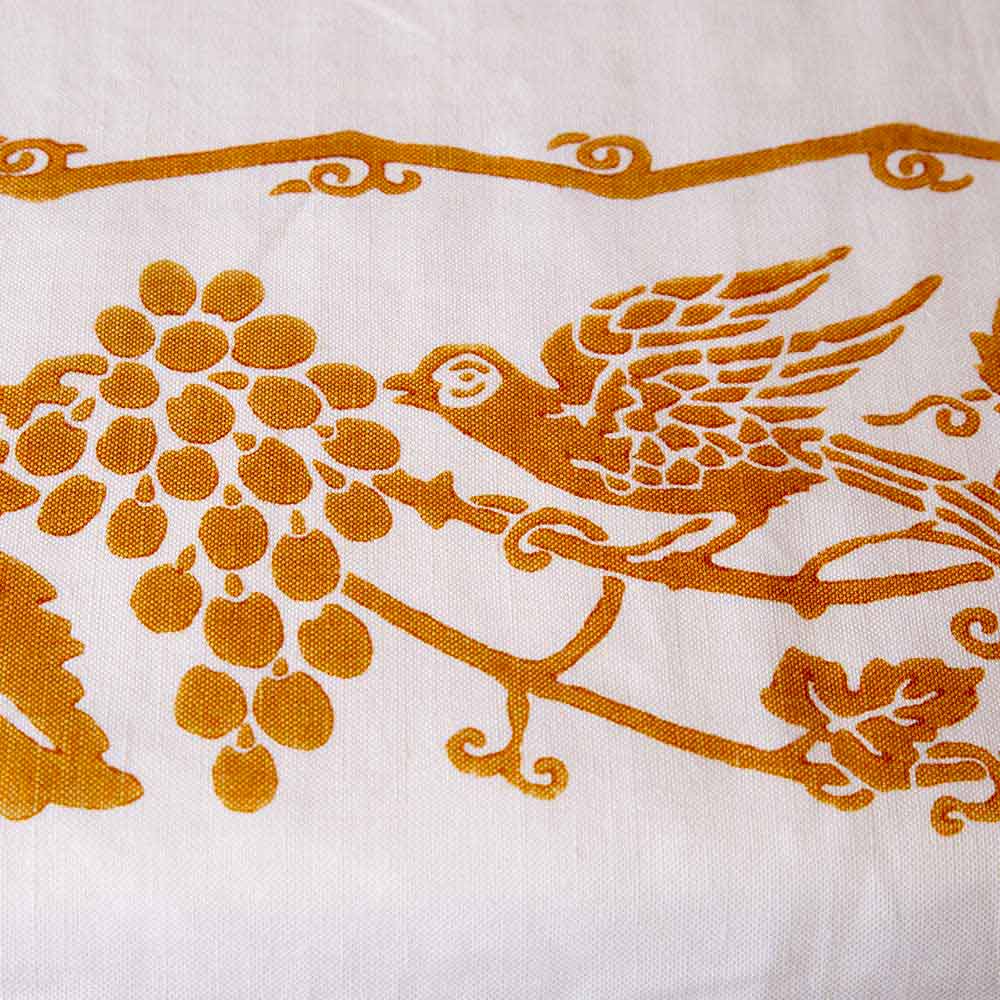 - 3 posibles impresiones disponibles: azul, con diseño antiguo de granada , un símbolo de abundancia y prosperidad; Óxido, con el antiguo dibujo tradicional de uvas picoteadoras Uccellino ; Rust, con un diseño antiguo del nudo de amor Malatesta (una familia feudal italiana que marca la historia del territorio), un símbolo de su vínculo indisoluble.