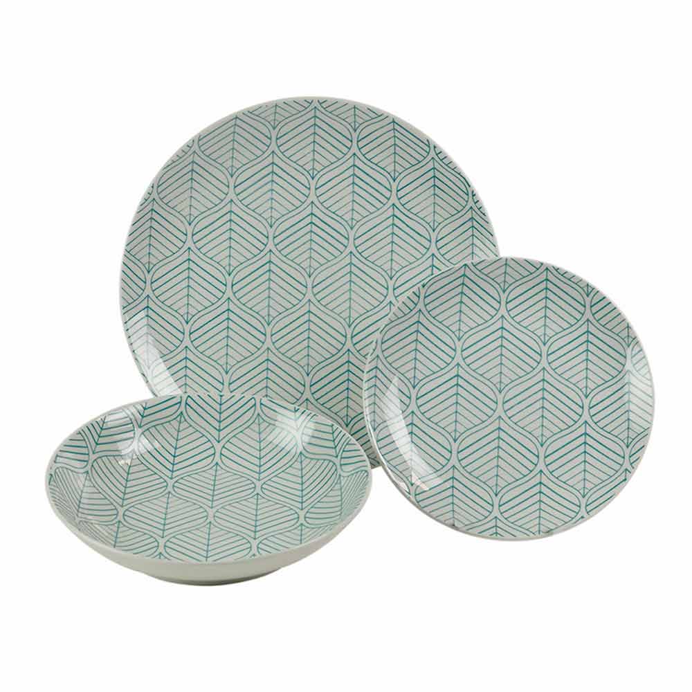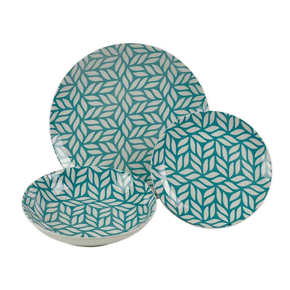 Vajilla de porcelana de colores con elegantes decoraciones de diseño, 18 piezas.