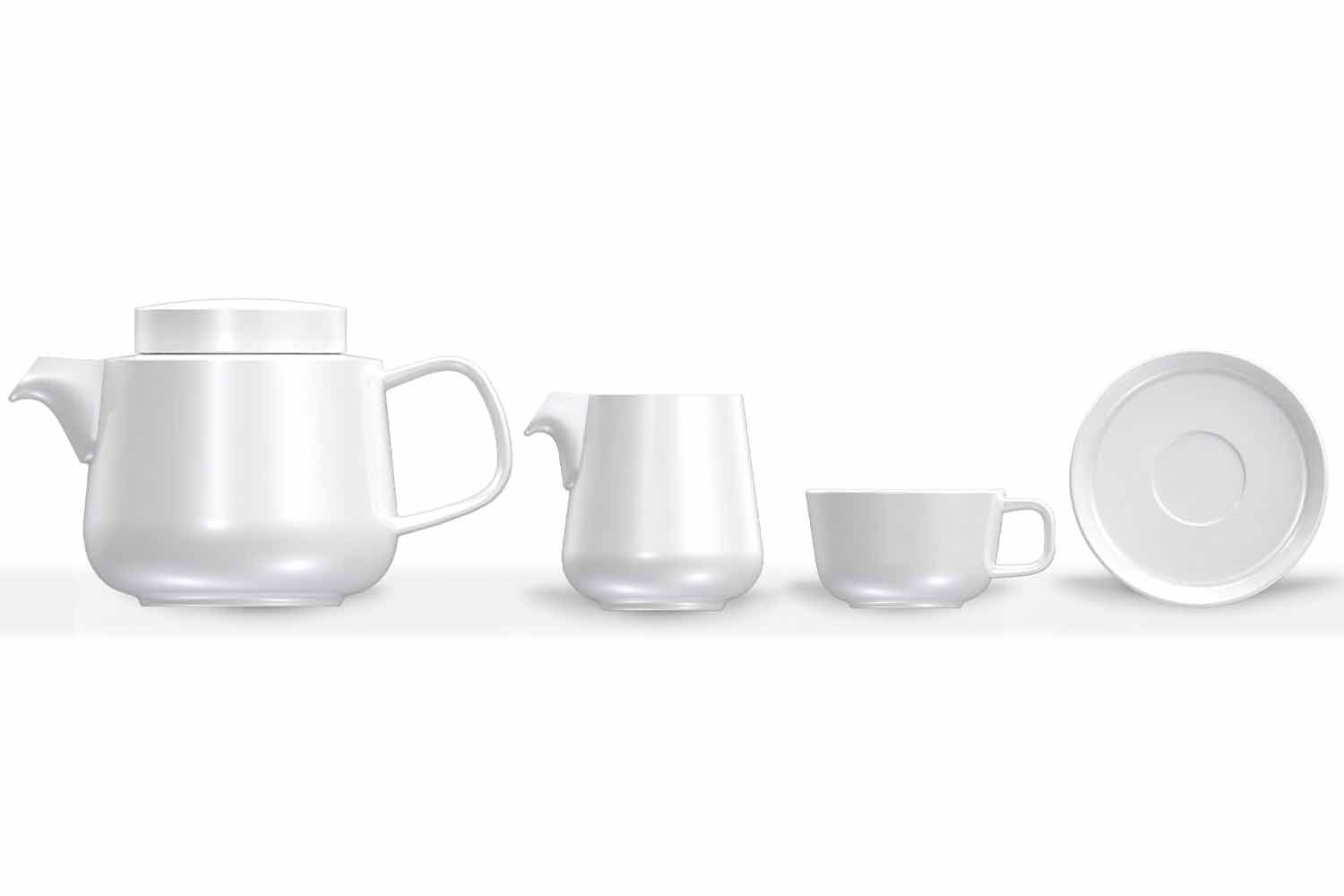 Juego de té con tazas, platillos, tetera y jarra de leche en porcelana de diseño de inspiración escandinava 14 piezas.