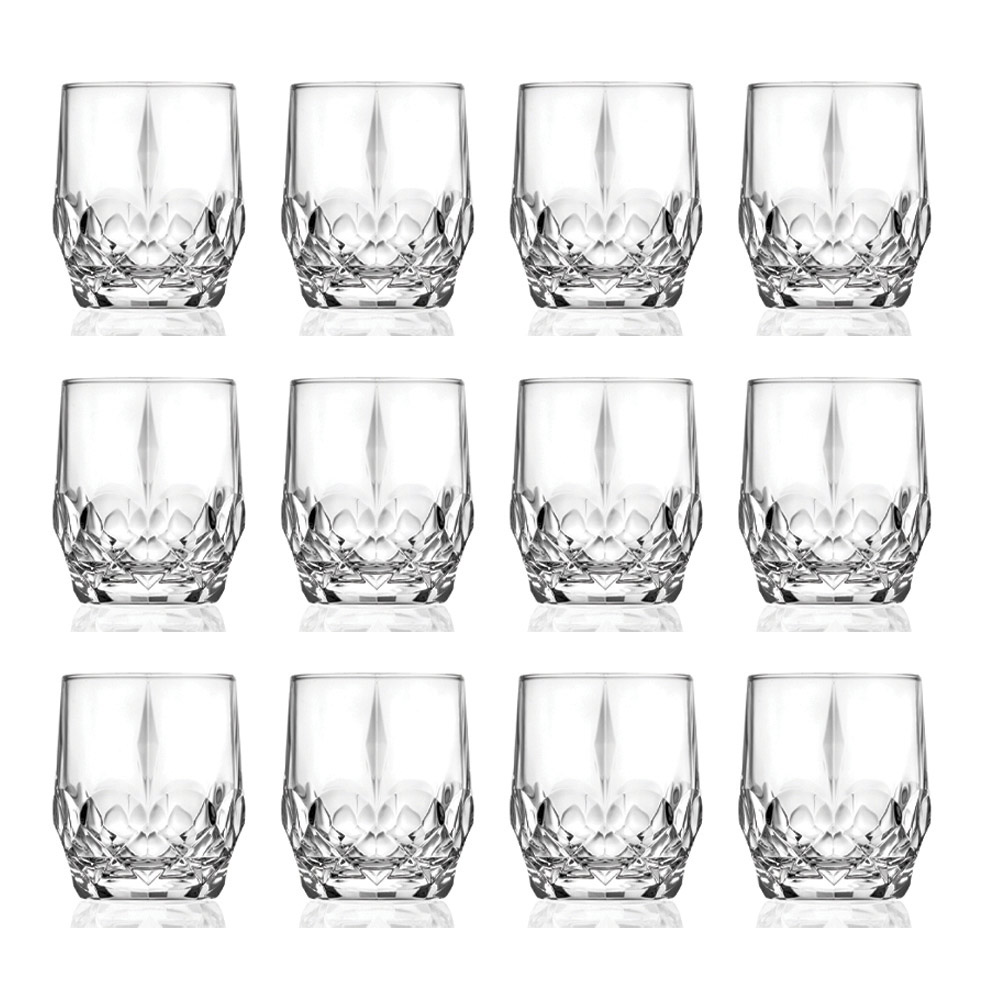 Vasos de servicio para whisky en cristal ecológico decorado, 12 piezas fabricadas en Italia.